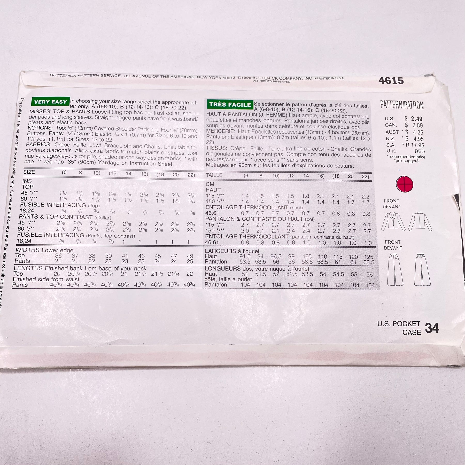 - Please note your size and measurements, as well as the required notions on the package.
