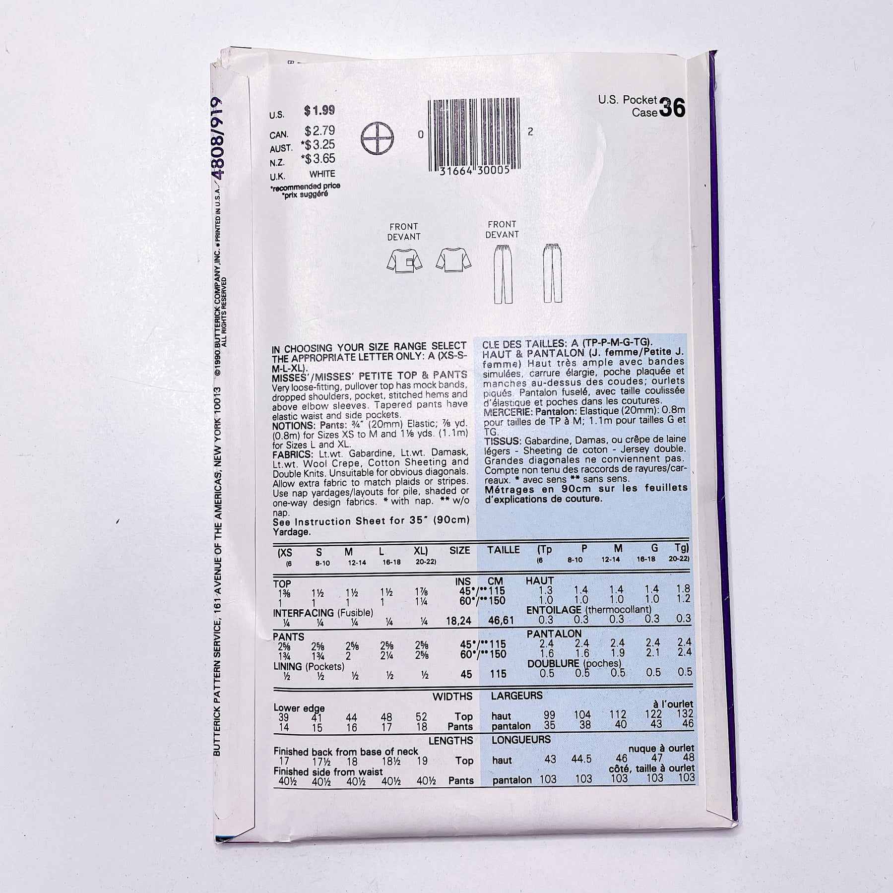 - Please note your size and measurements, as well as the required notions on the package.