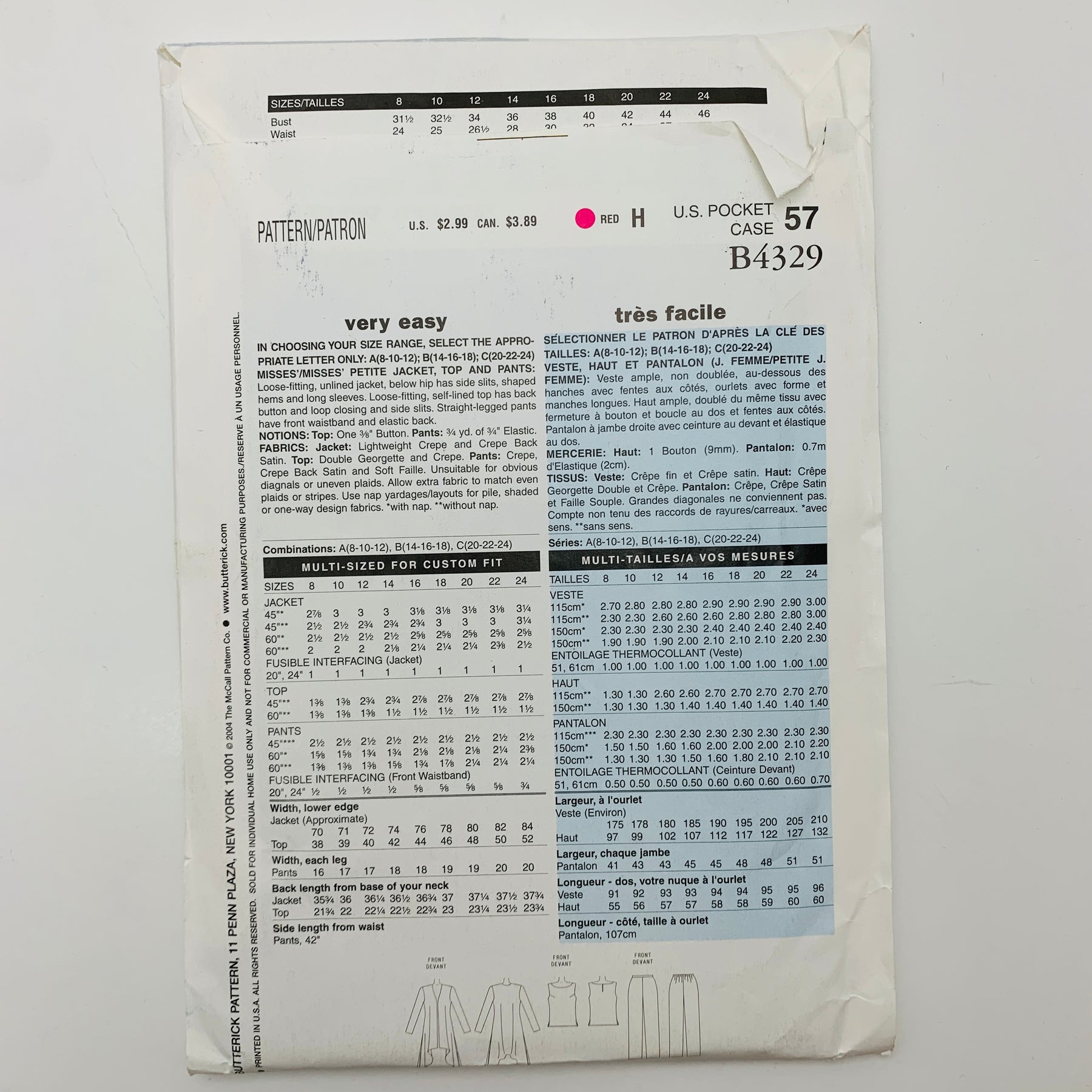 - Please note your size and measurements, as well as the required notions on the package.