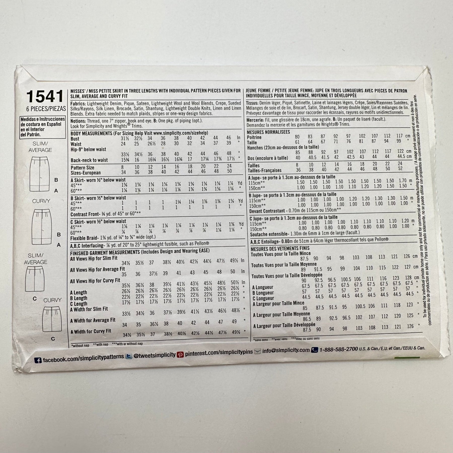 Sewing Pattern - Womenswear - Simplicity 1541