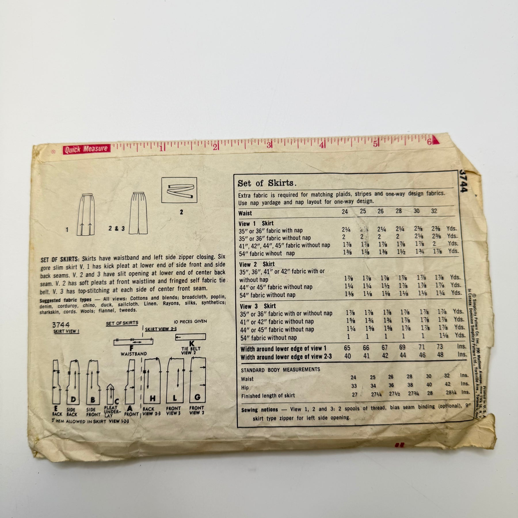 - Please note your size and measurements, as well as the required notions on the package.