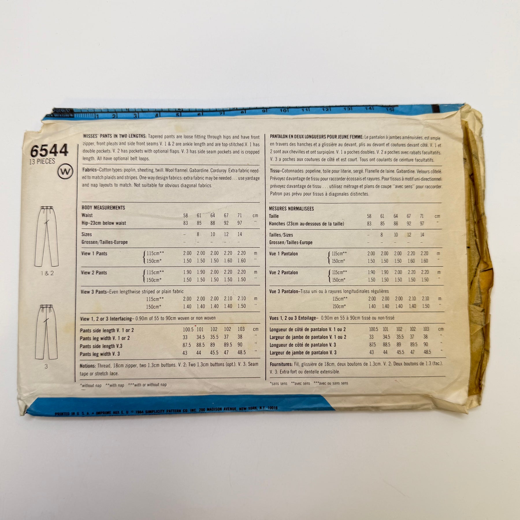 - Please note your size and measurements, as well as the required notions on the package.