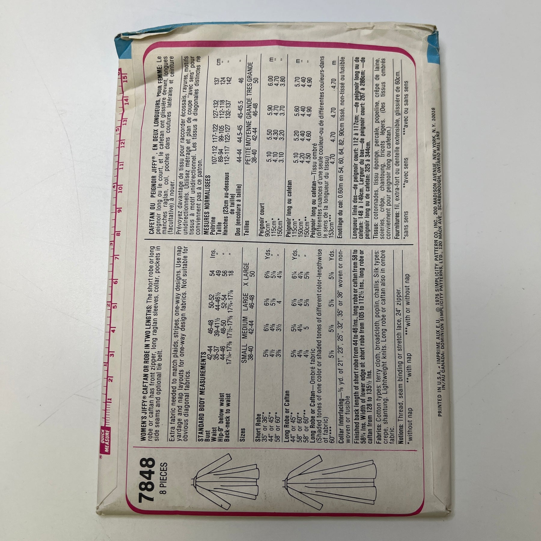 • Please note your size and measurements, as well as the required notions on the package.