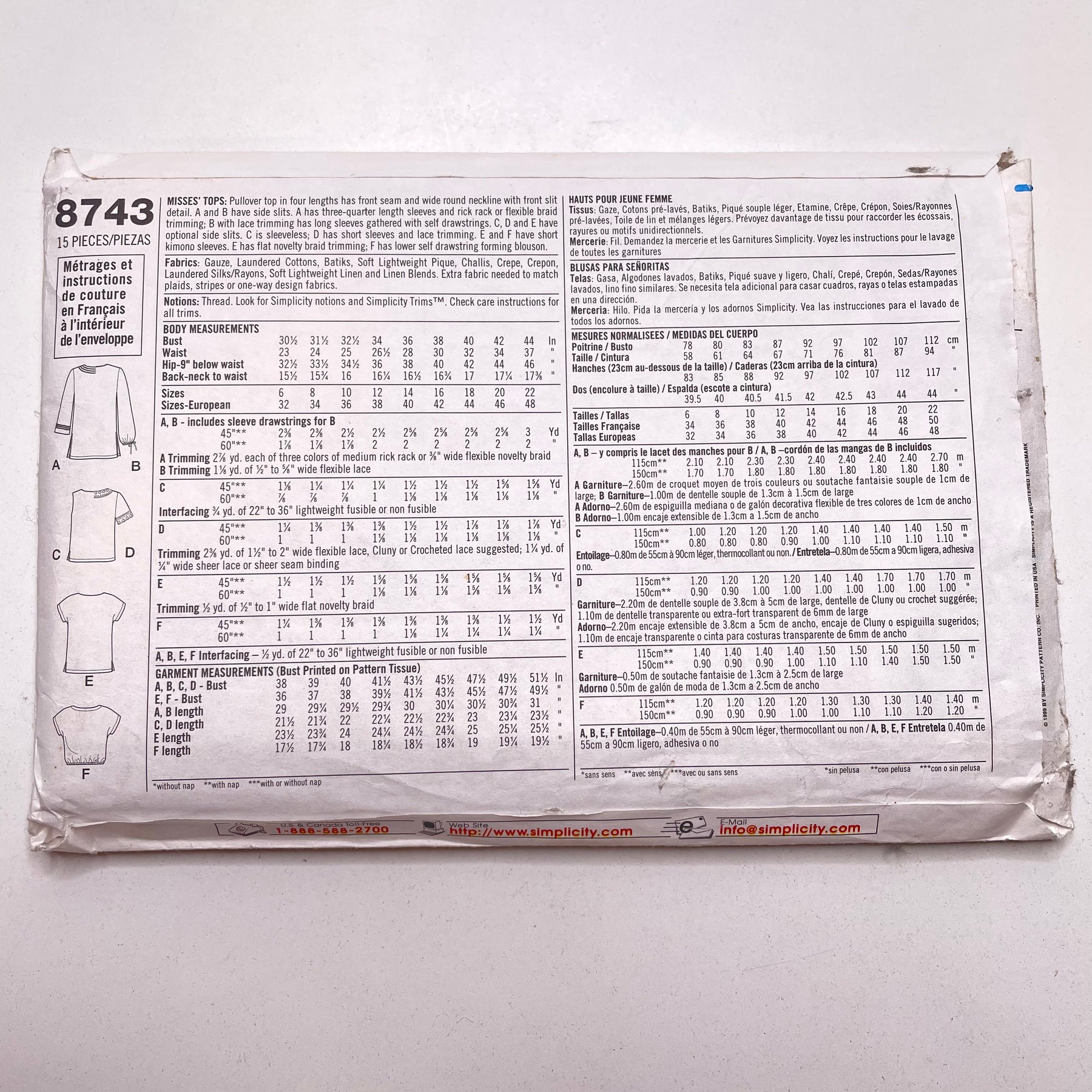 Sewing Pattern - Womenswear - Simplicity 8743