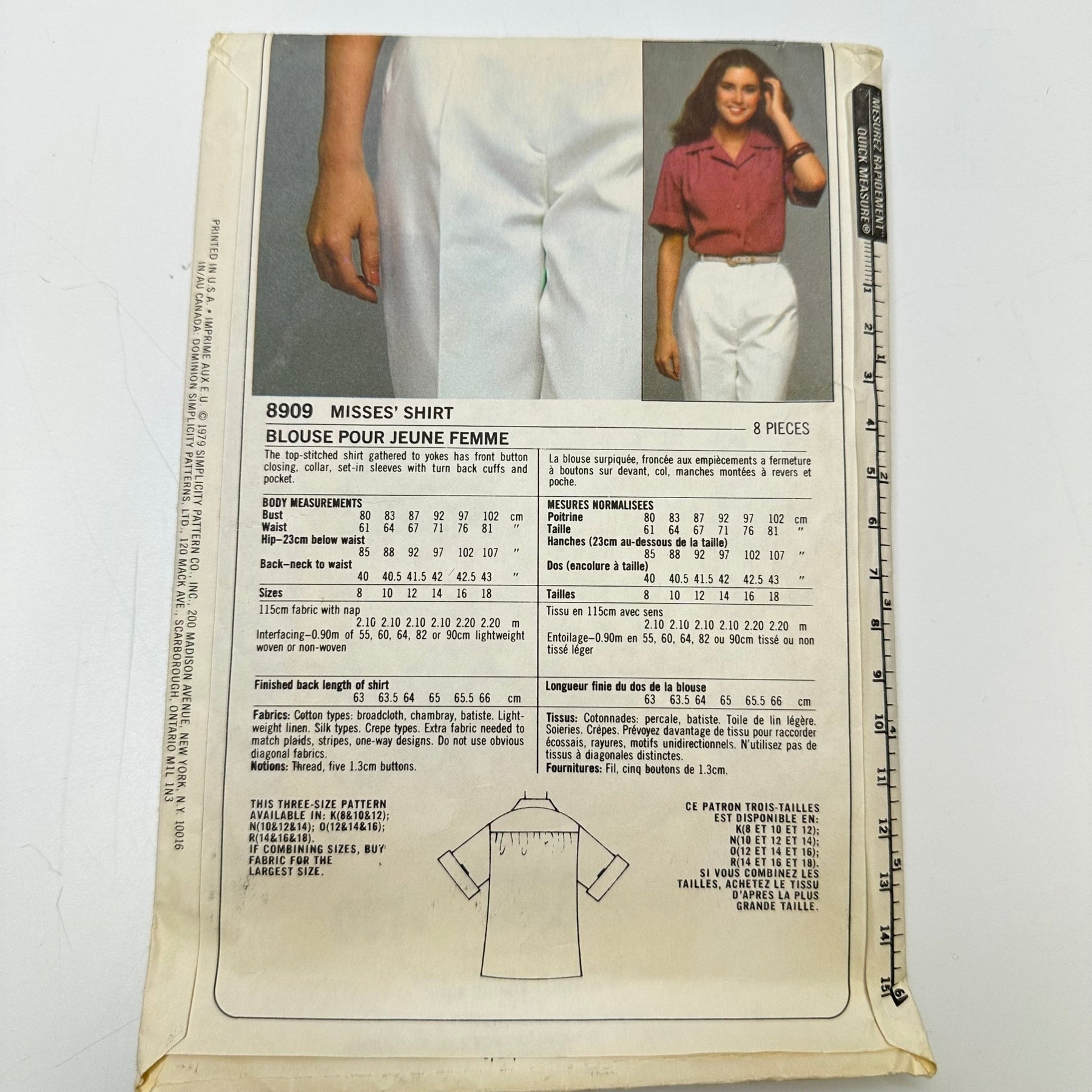 • Please note your size and measurements, as well as the required notions on the package.