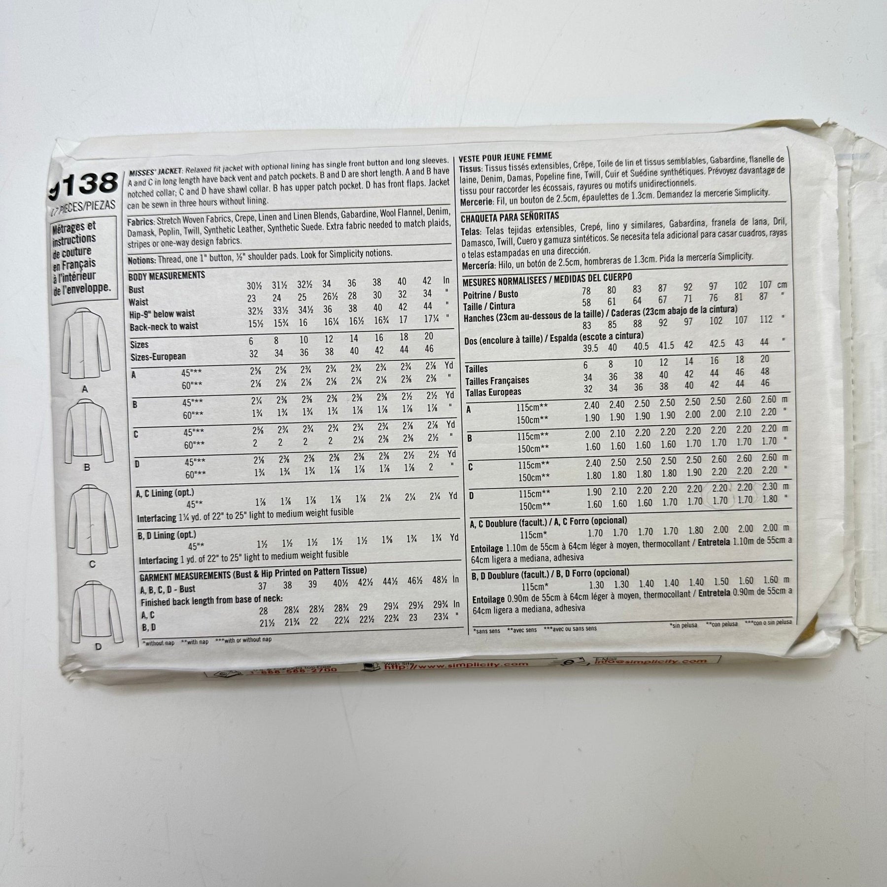 Sewing Pattern - Womenswear - Simplicity 9138