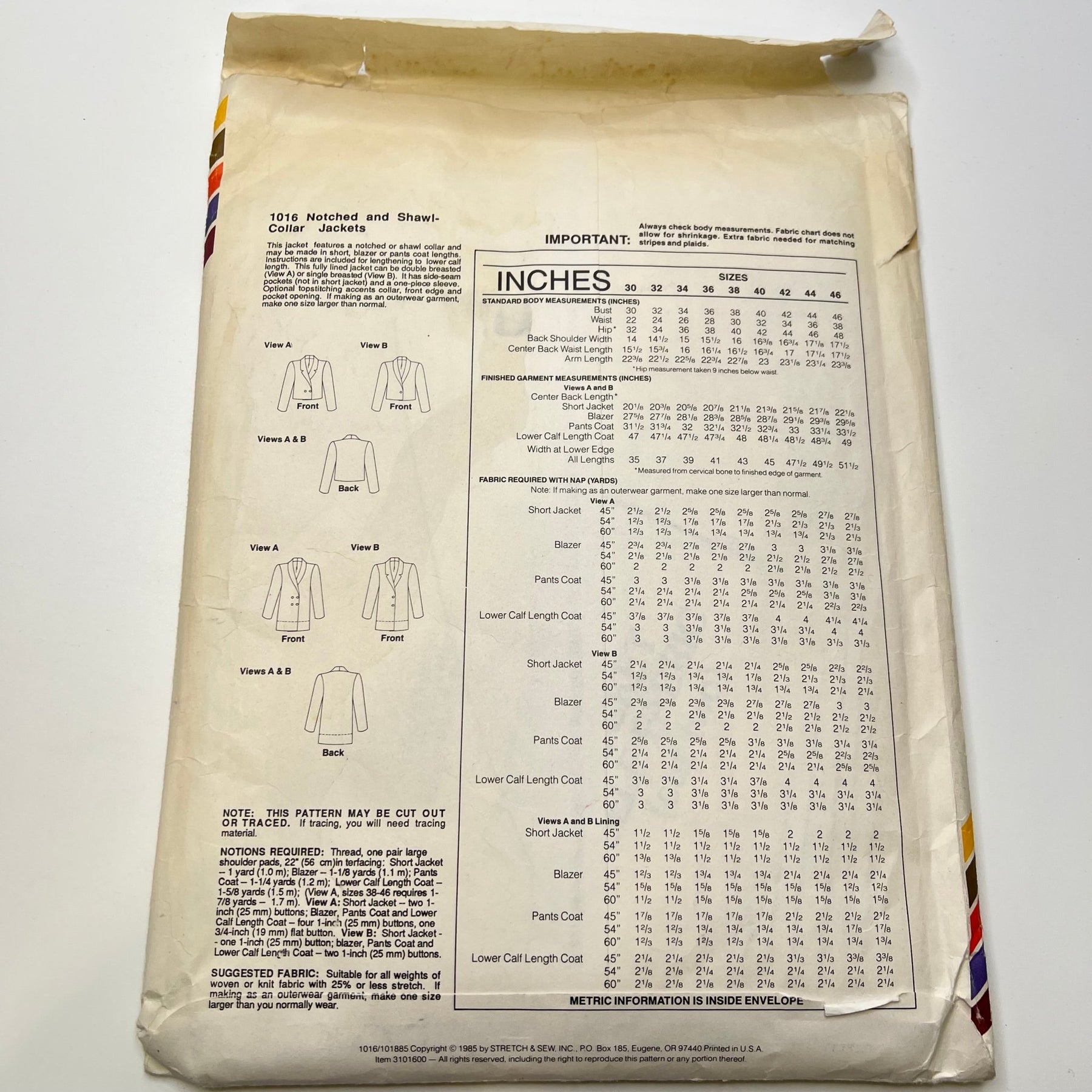 - Please note your size and measurements, as well as the required notions on the package.