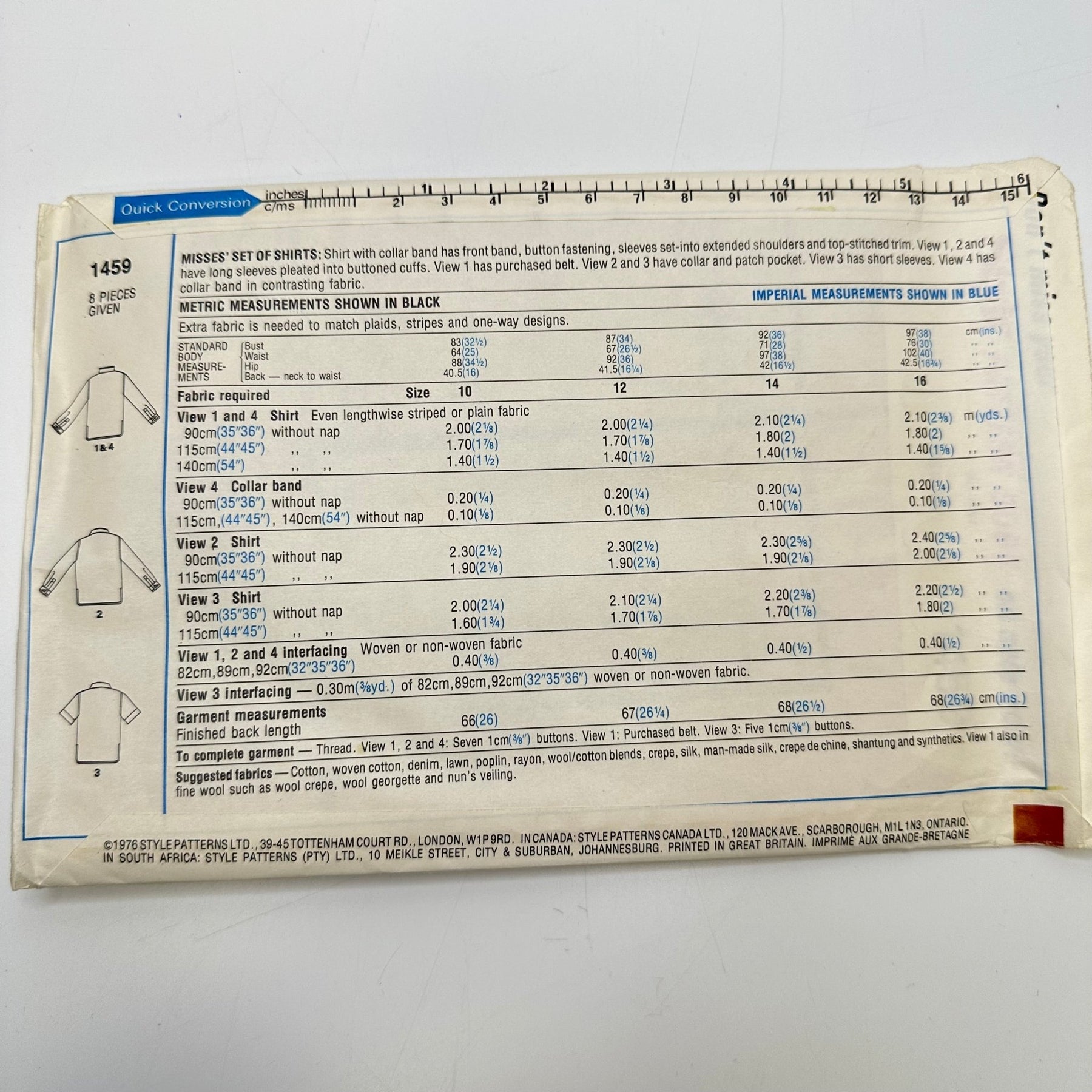 • Please note your size and measurements, as well as the required notions on the package.