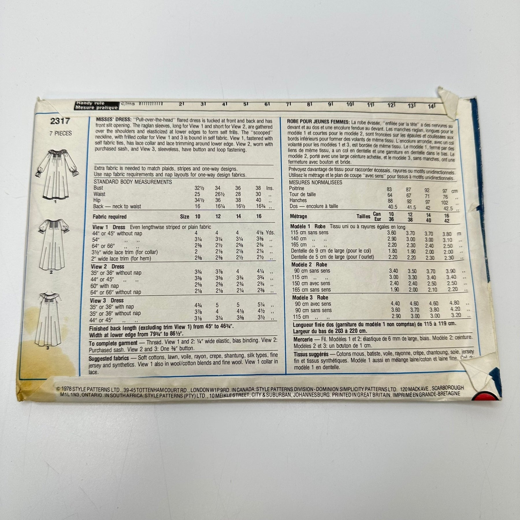 - Please note your size and measurements, as well as the required notions on the package.