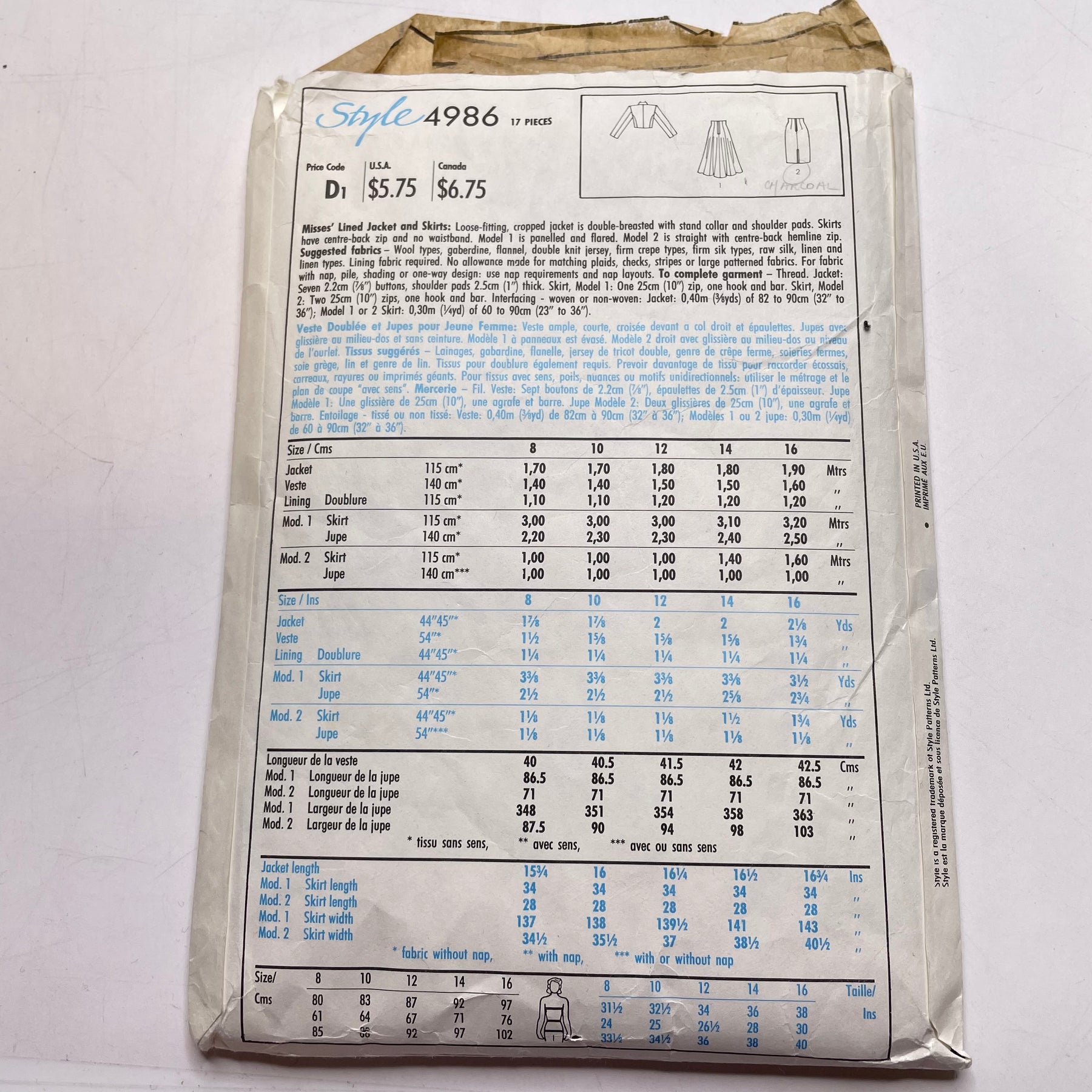 - Please note your size and measurements, as well as the required notions on the package.