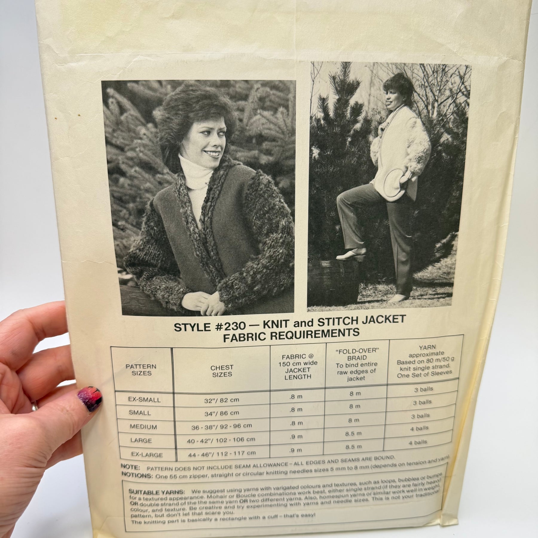 - Please note your size and measurements, as well as the required notions on the package.