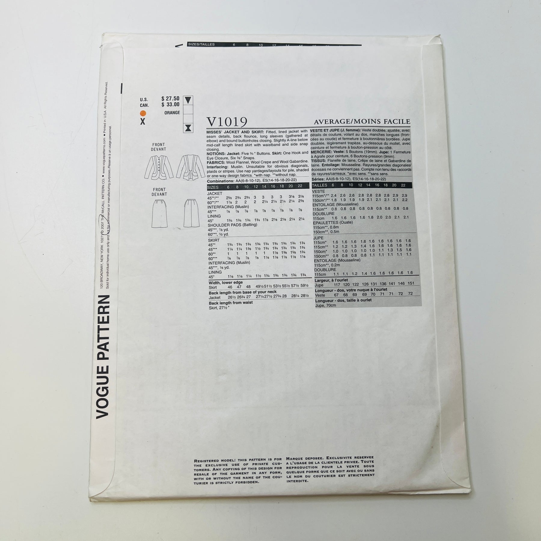 Sewing Pattern - Womenswear - Vogue 1019