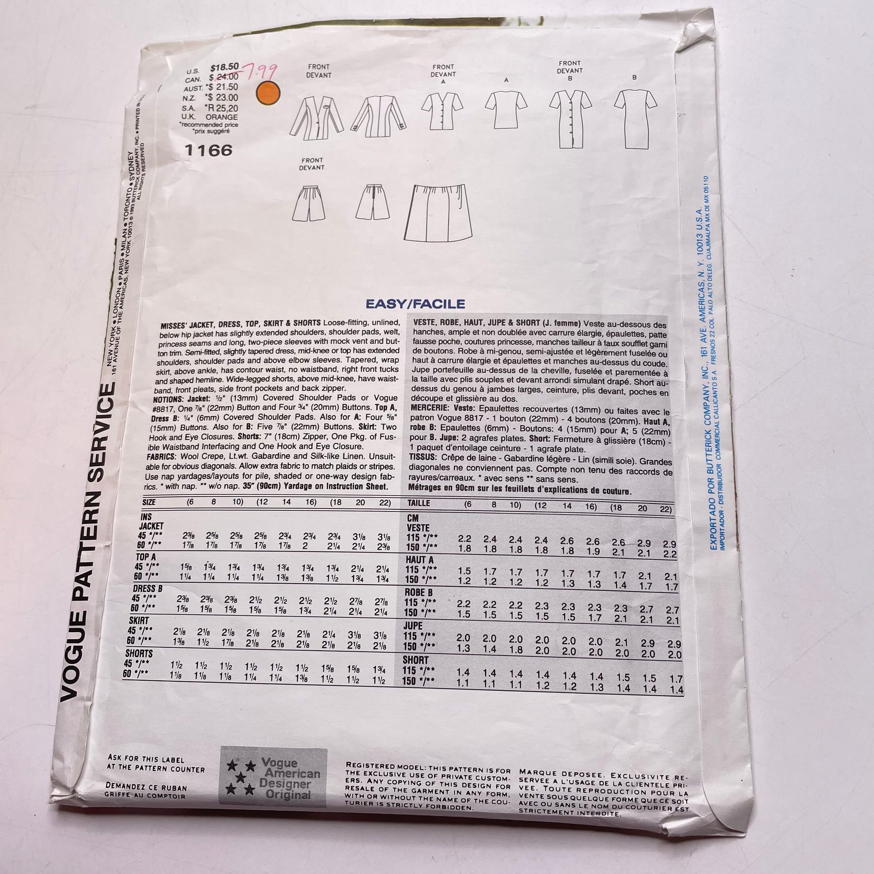 Sewing Pattern - Womenswear - Vogue 1166