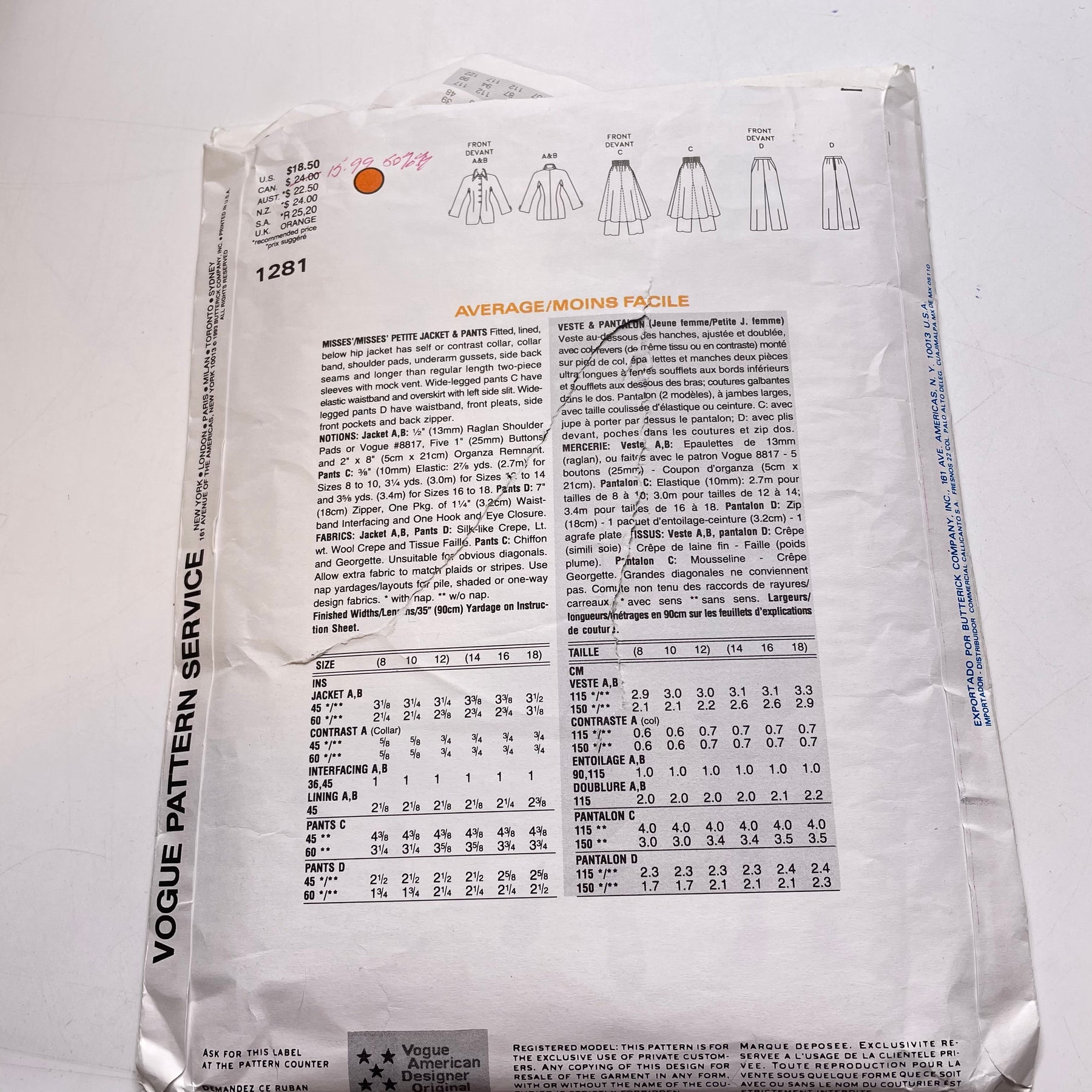 Sewing Pattern - Womenswear - Vogue 1281