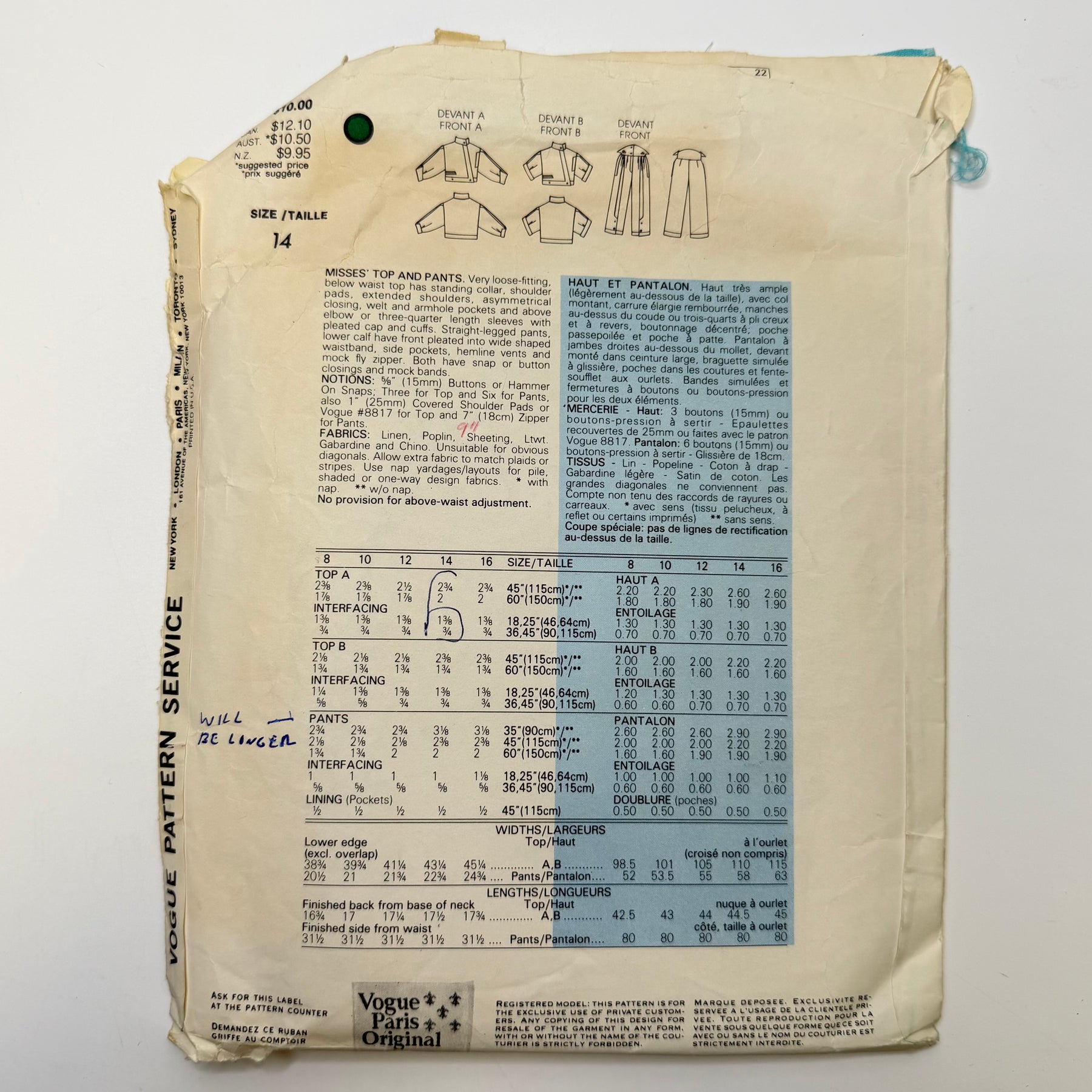 • Please note your size and measurements, as well as the required notions on the package.