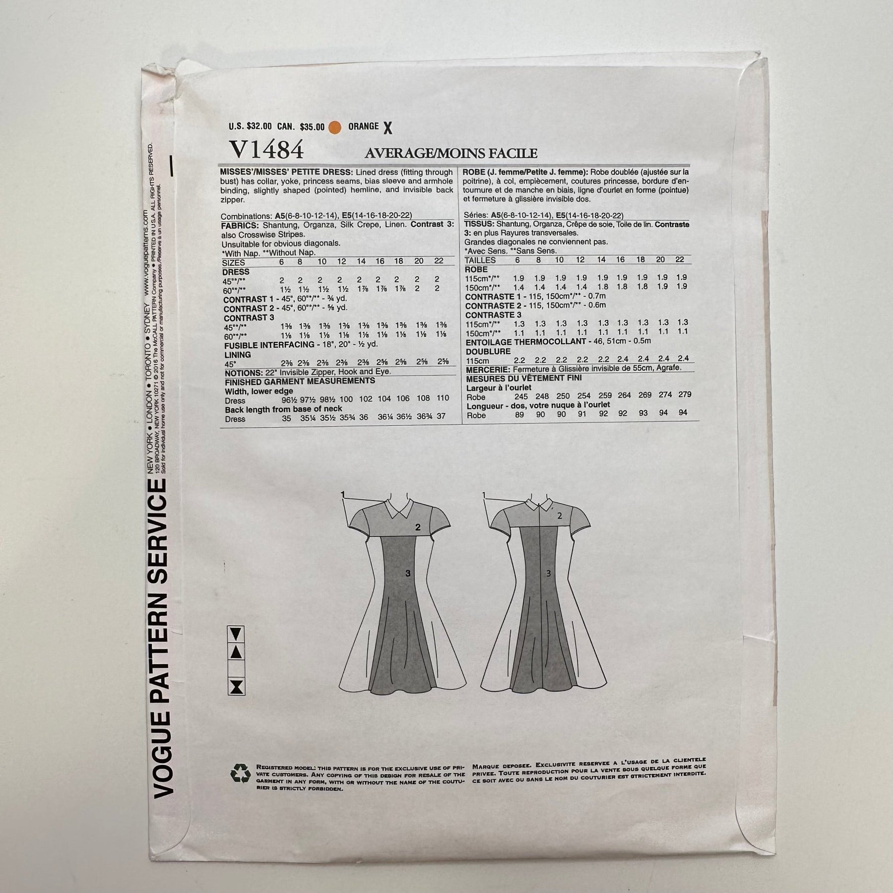 Sewing Pattern - Womenswear - Vogue 1484