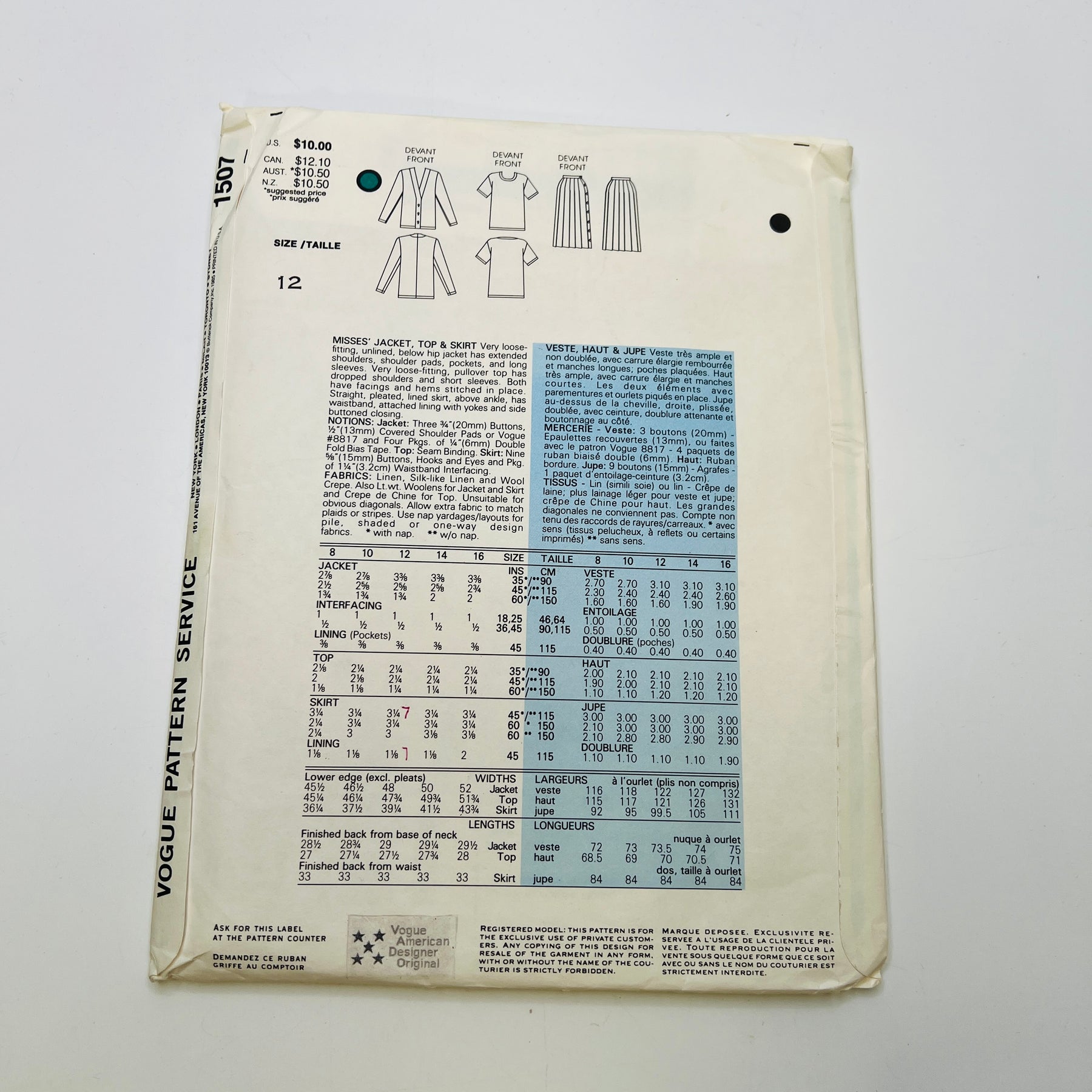Sewing Pattern - Womenswear - Vogue 1507