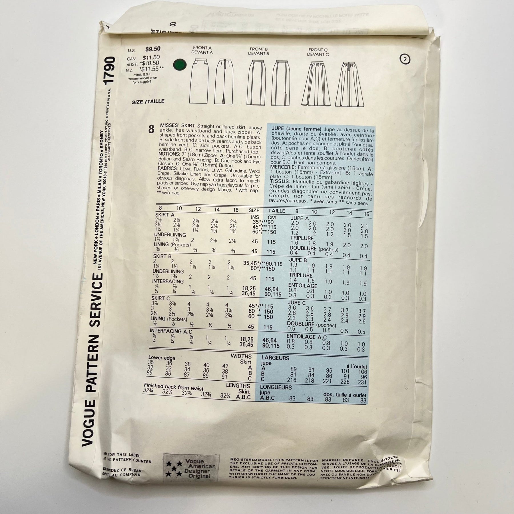 Sewing Pattern - Womenswear - Vogue 1790