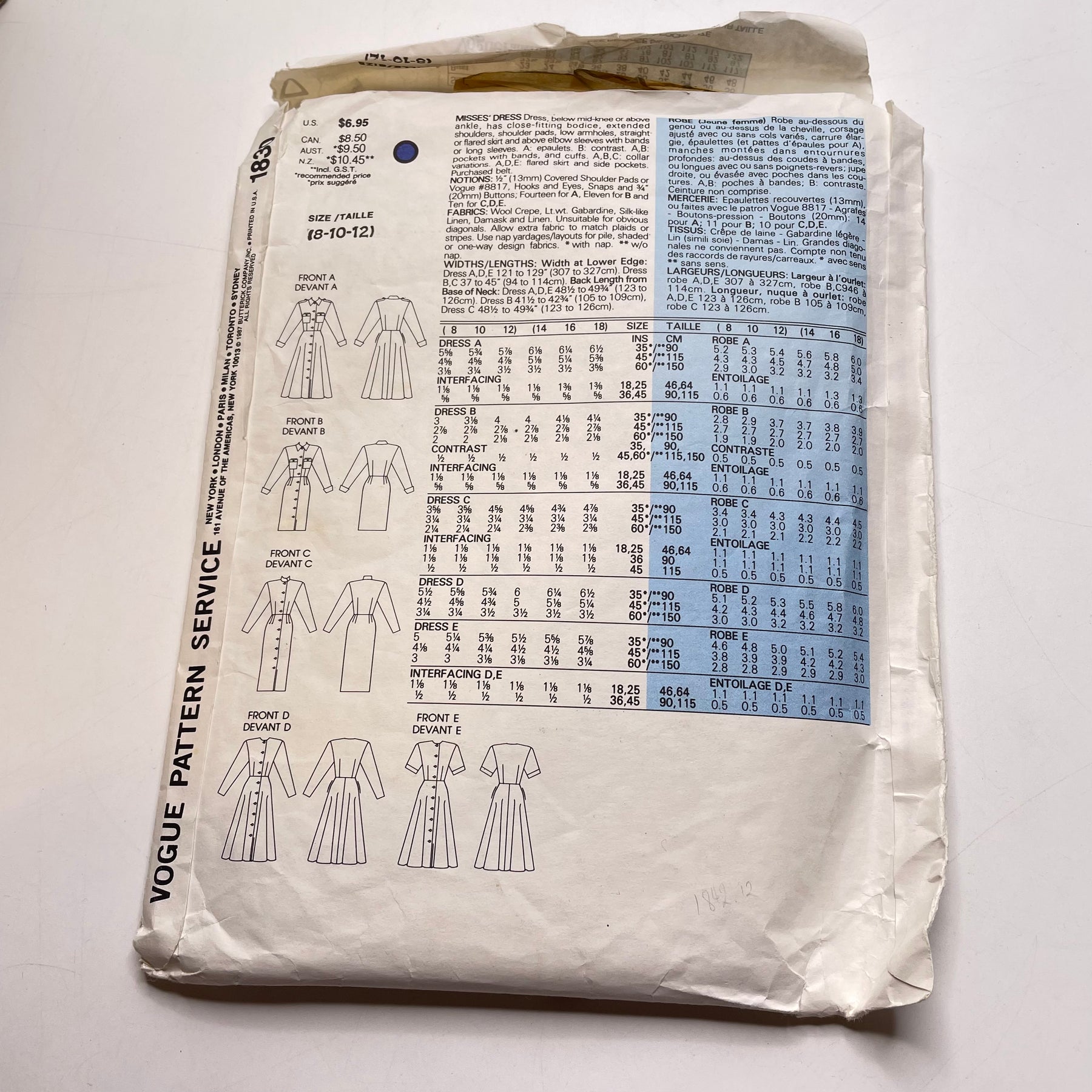 Sewing Pattern - Womenswear - Vogue 1830