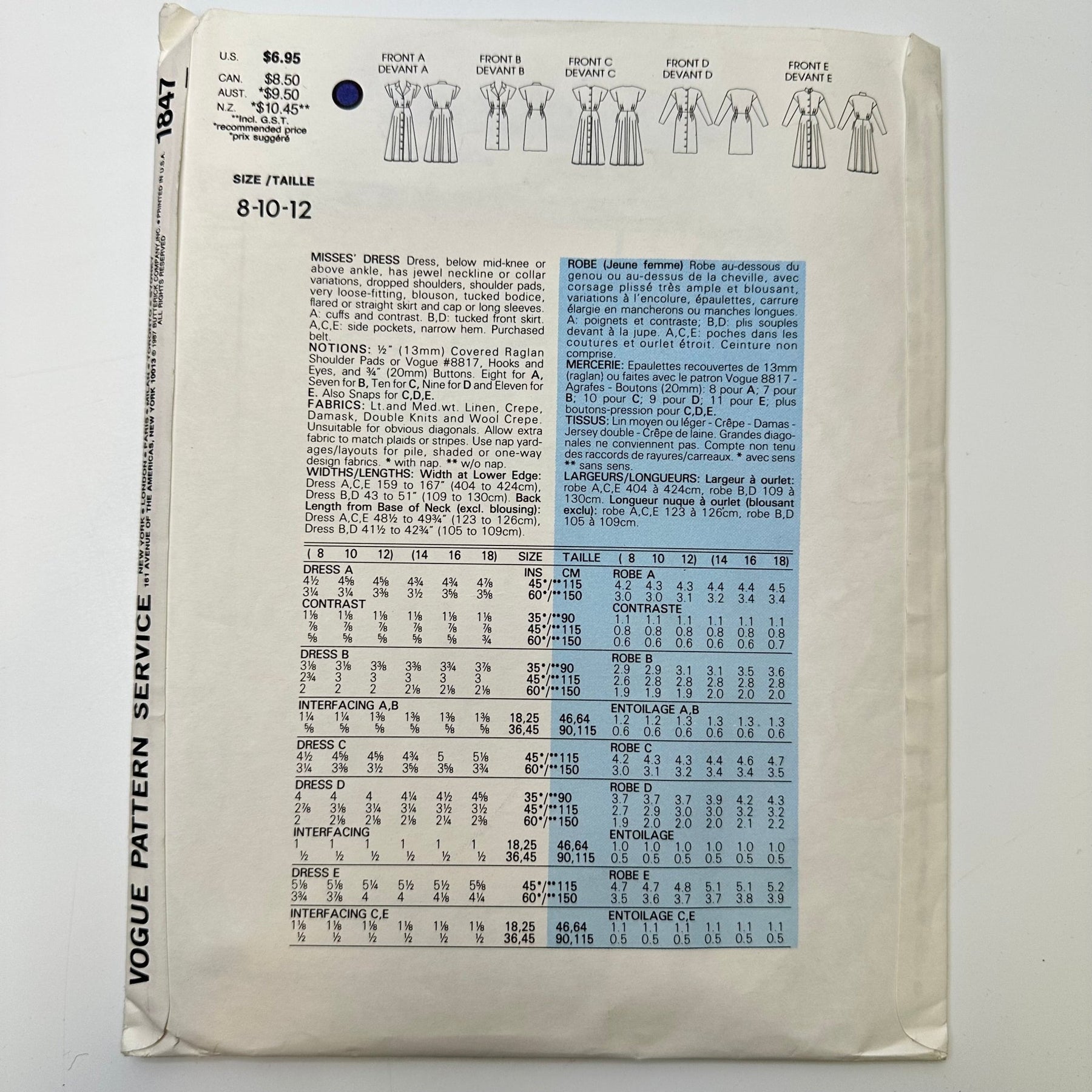 Sewing Pattern - Womenswear - Vogue 1847