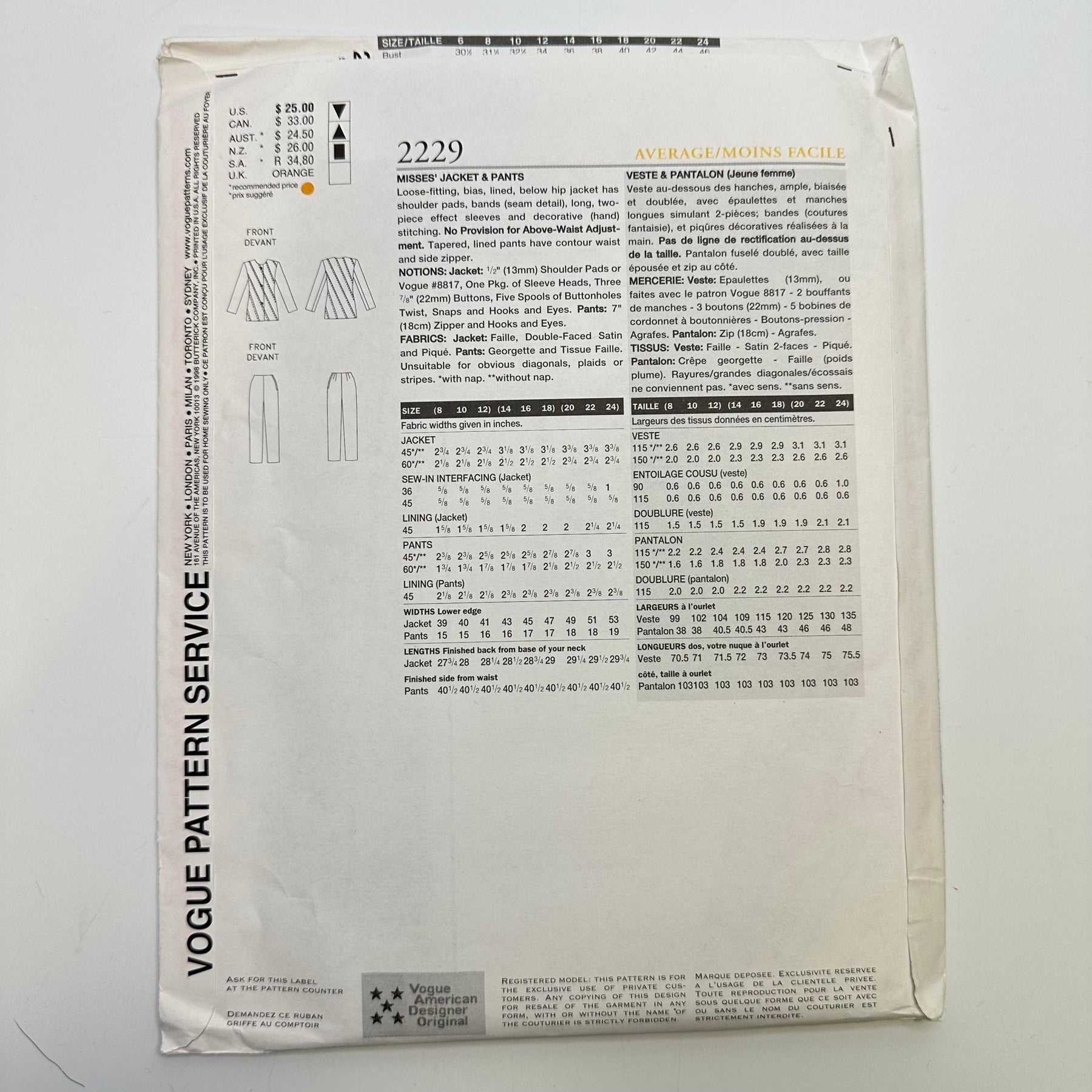 Sewing Pattern - Womenswear - Vogue 2229