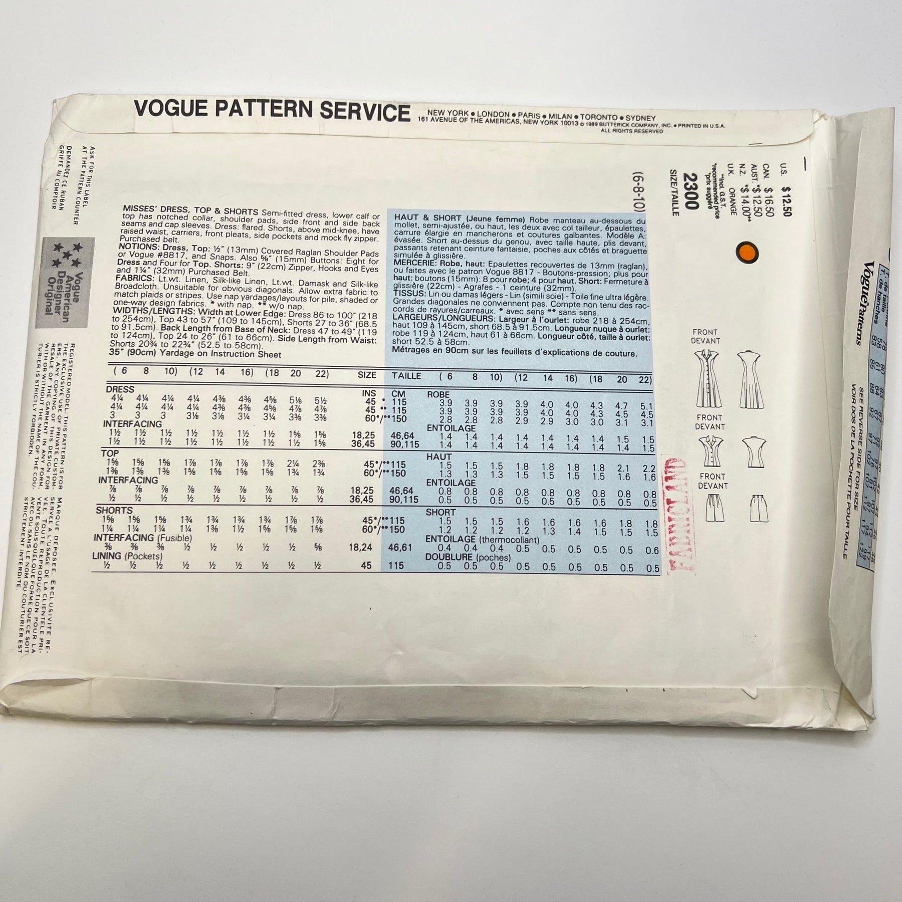 Sewing Pattern - Womenswear - Vogue 2300
