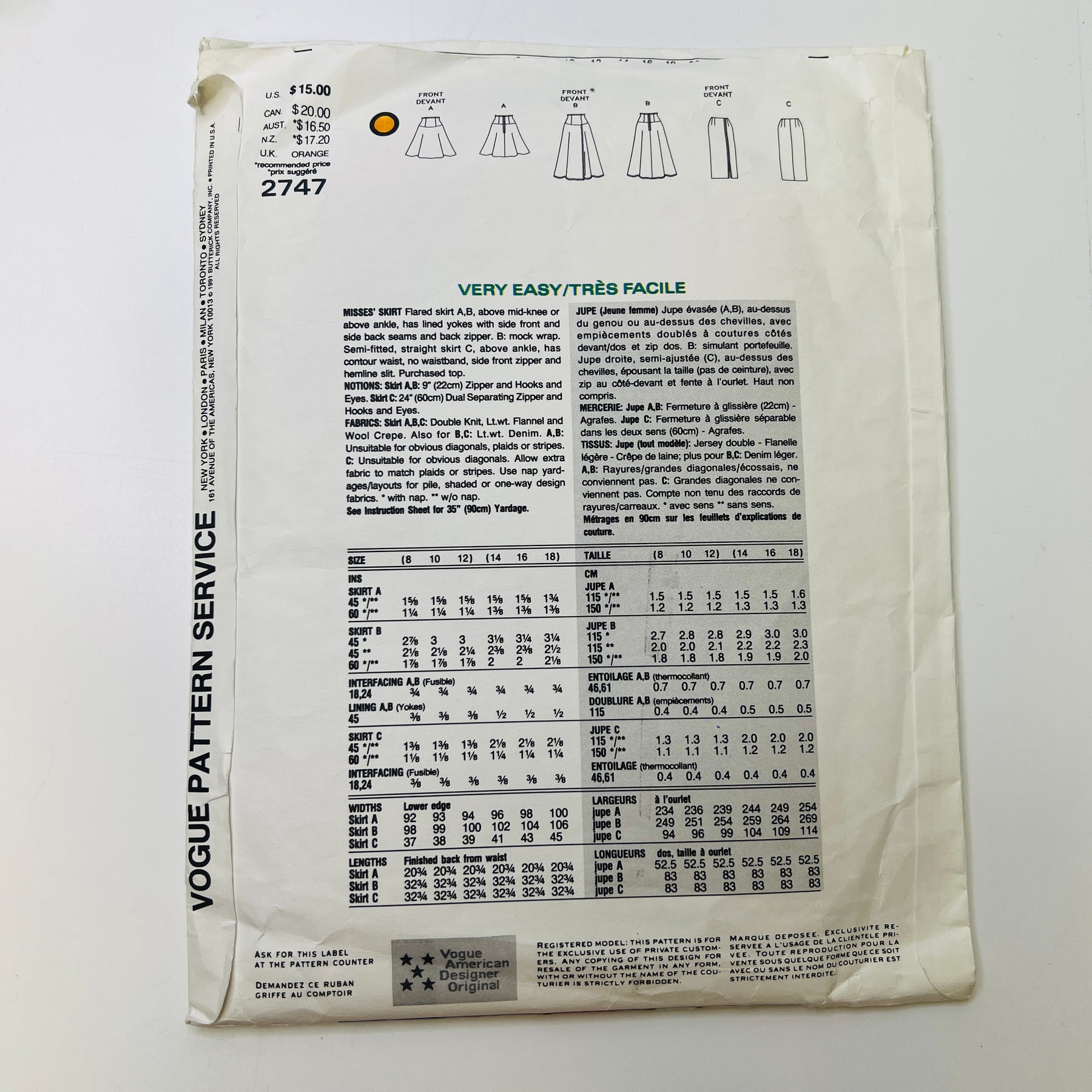 Sewing Pattern - Womenswear - Vogue 2747