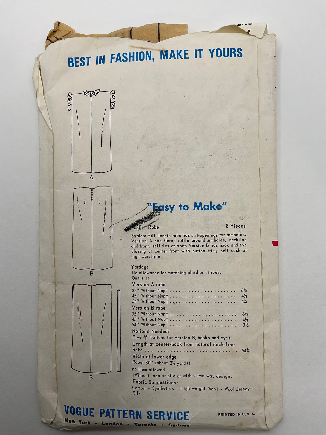 - Please note your size and measurements, as well as the required notions on the package.