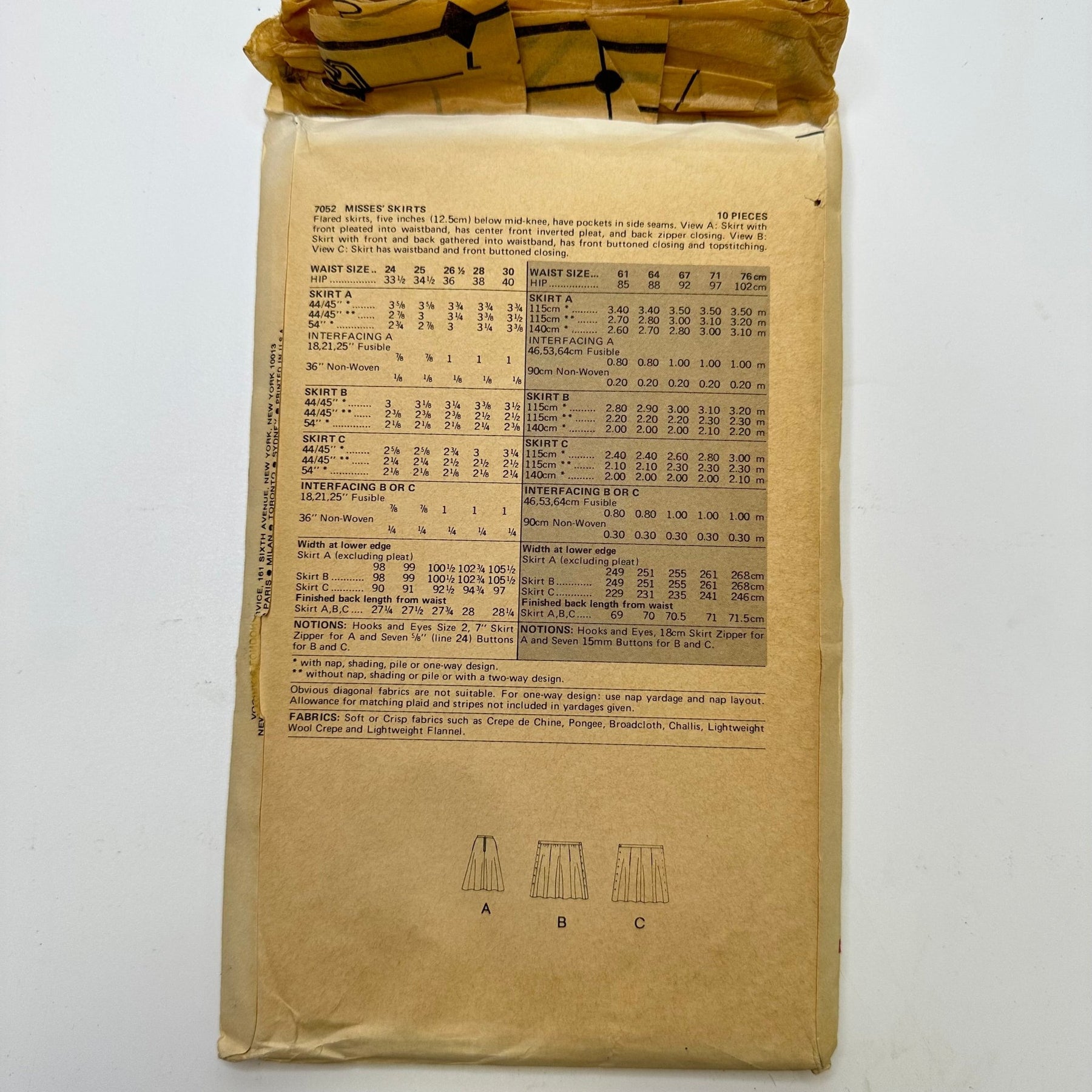 - Please note your size and measurements, as well as the required notions on the package.