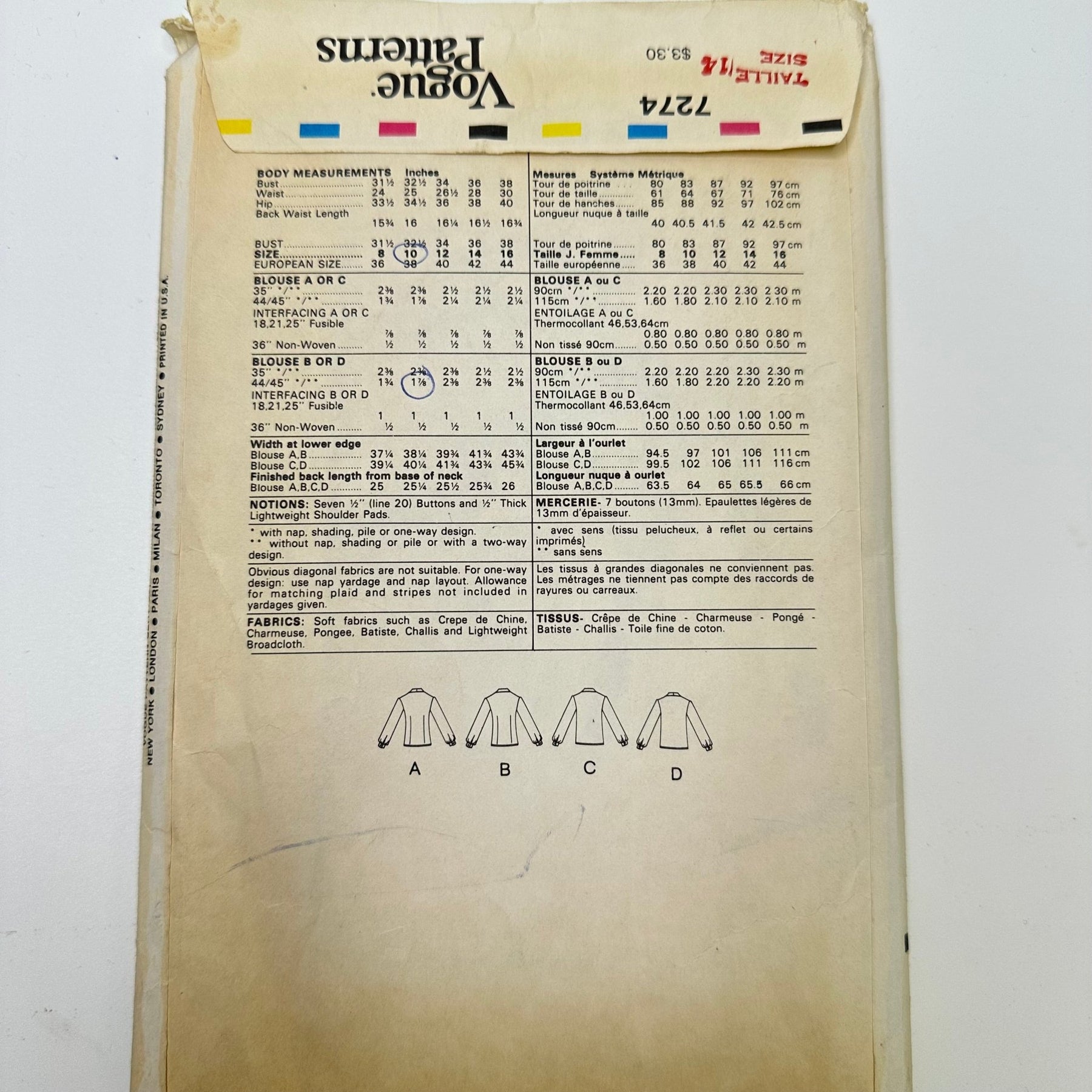 - Please note your size and measurements, as well as the required notions on the package.