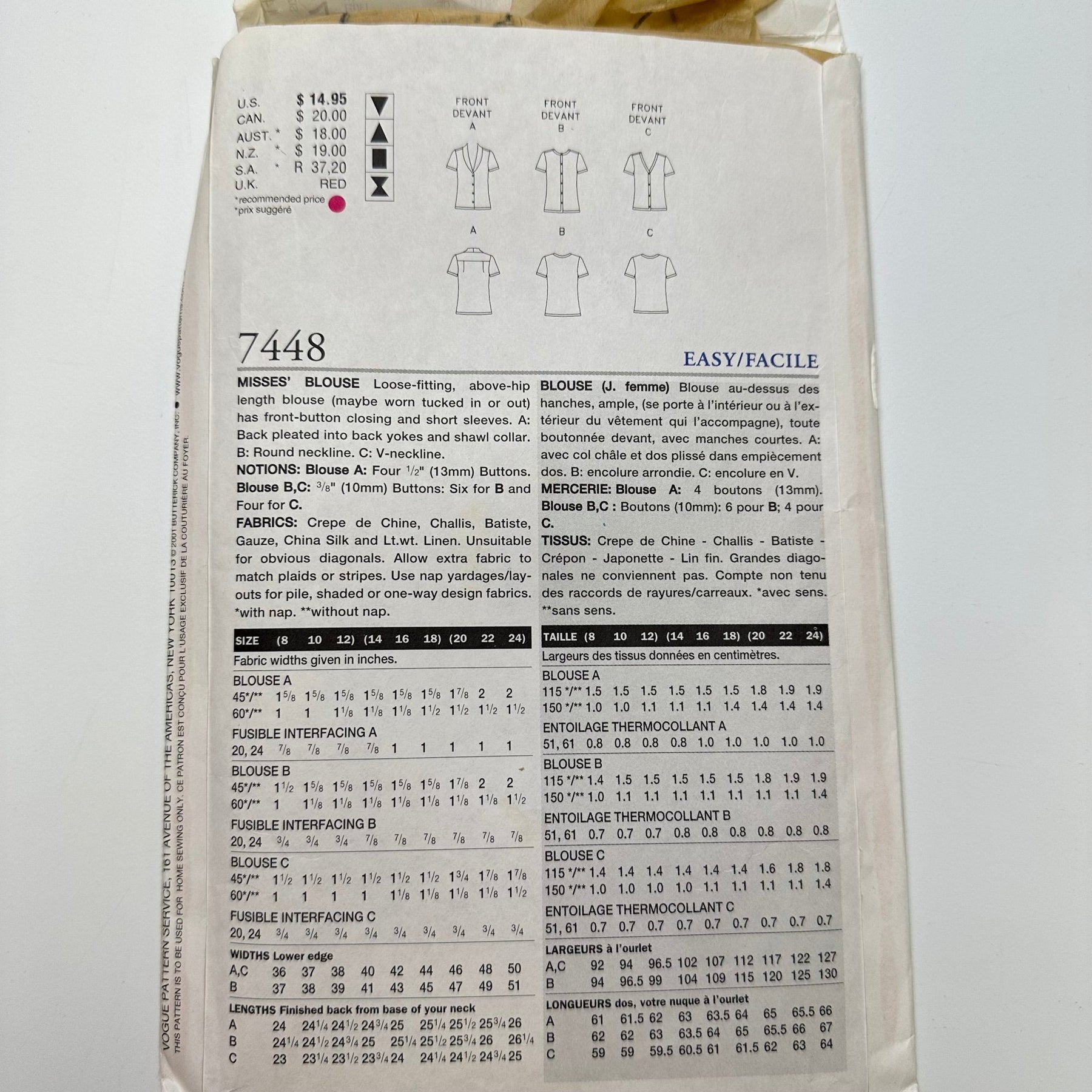 - Please note your size and measurements, as well as the required notions on the package.