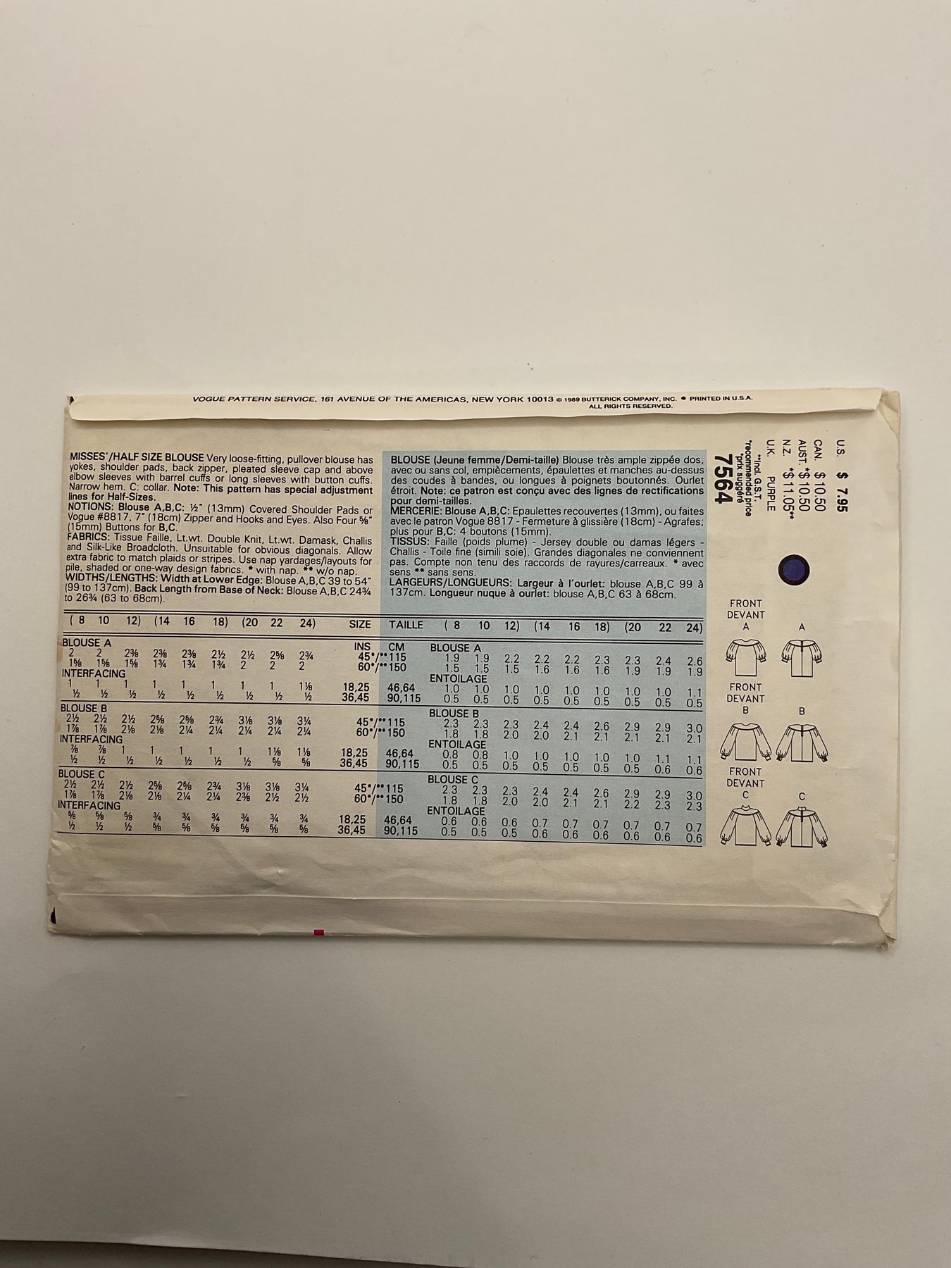 Sewing Pattern - Womenswear - Vogue 7564