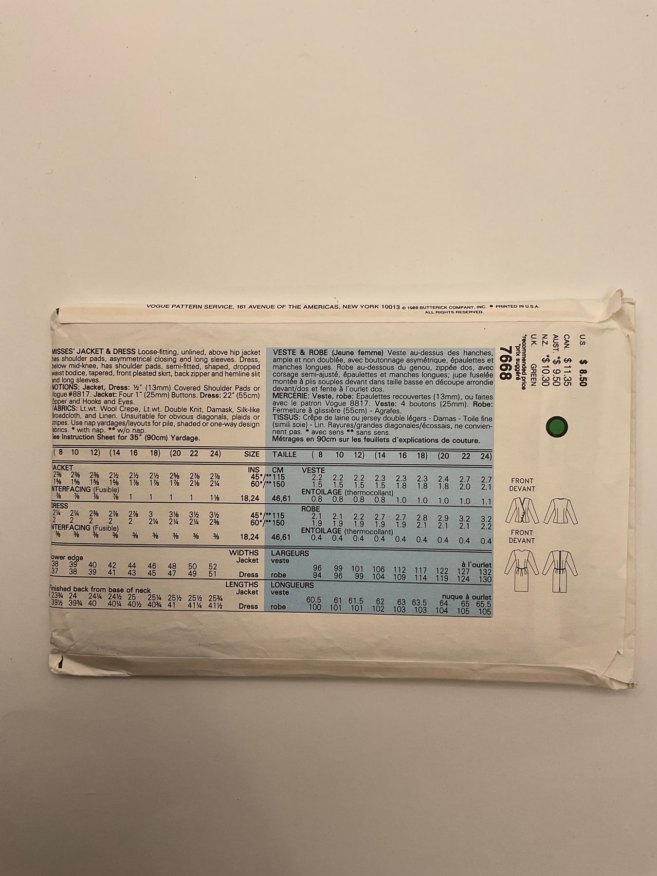 Sewing Pattern - Womenswear - Vogue 7668