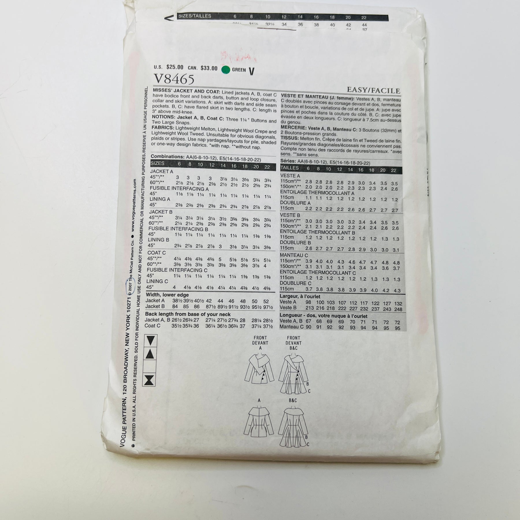 Sewing Pattern - Womenswear - Vogue 8465