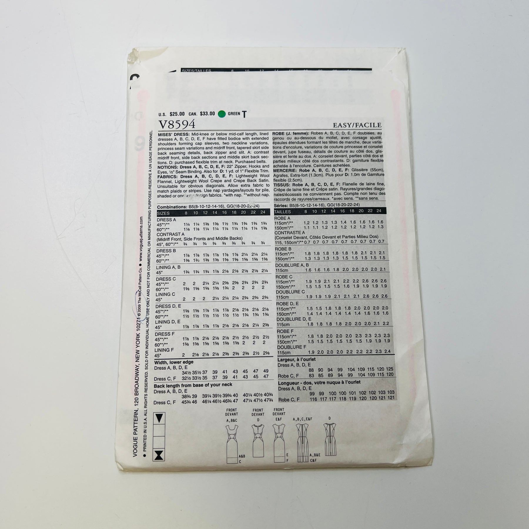 Sewing Pattern - Womenswear - Vogue 8594