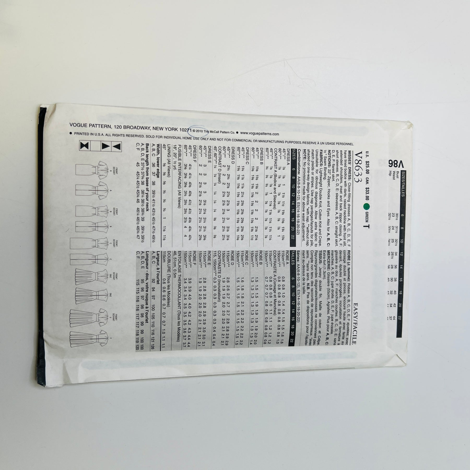 Sewing Pattern - Womenswear - Vogue 8633
