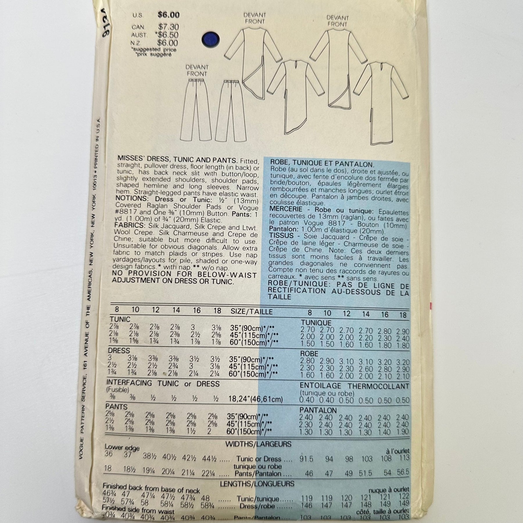 - Please note your size and measurements, as well as the required notions on the package.