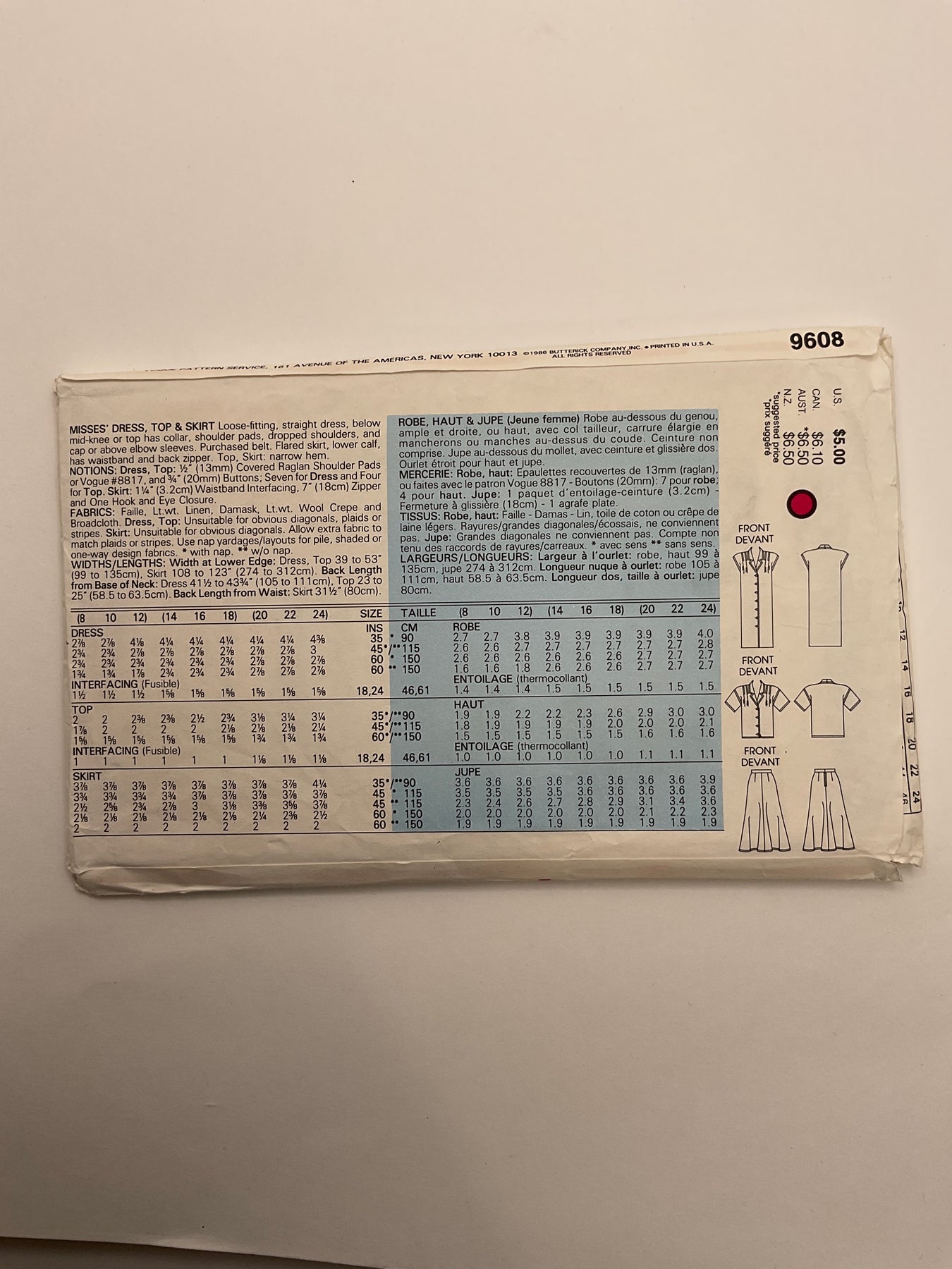 - Please note your size and measurements, as well as the required notions on the package.