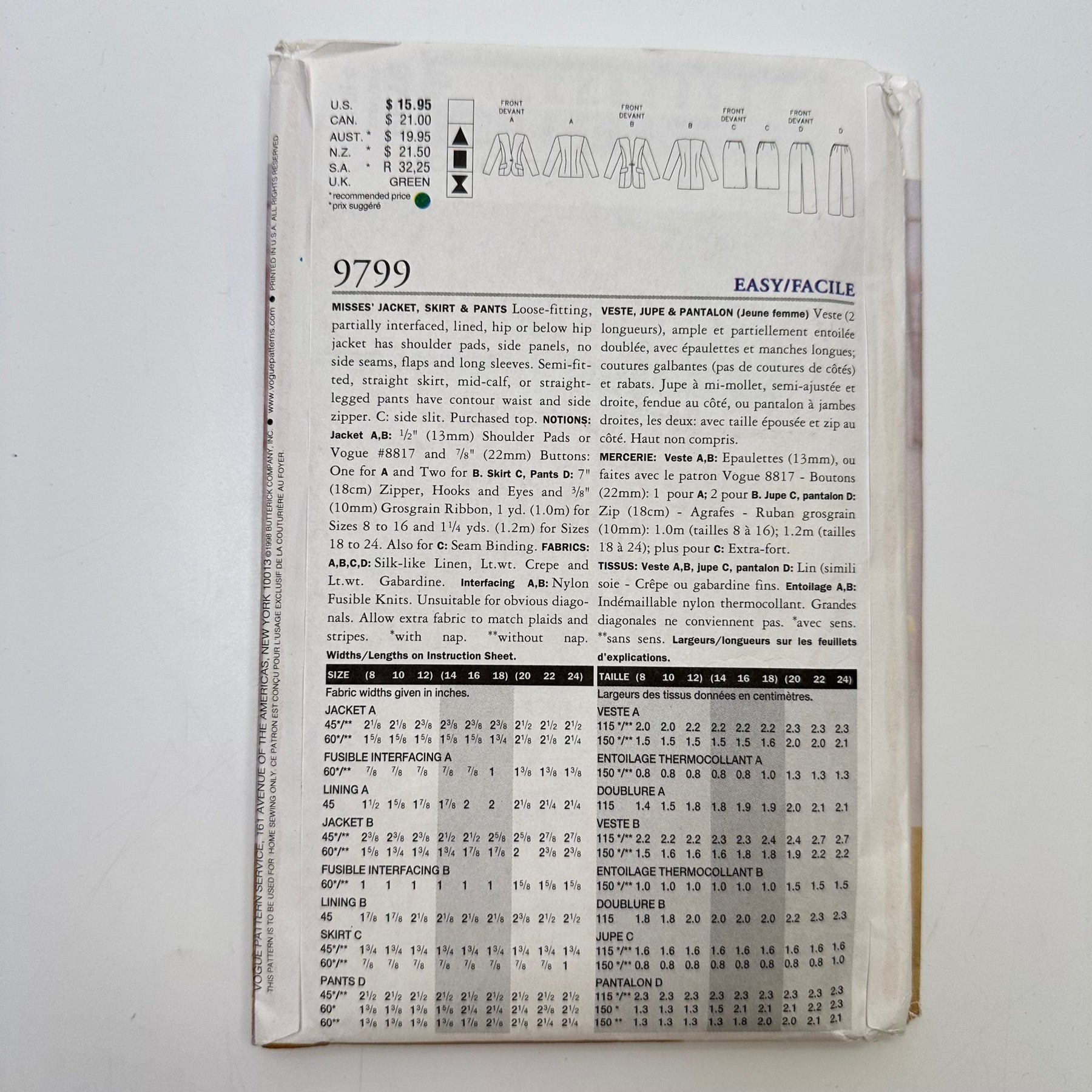 Sewing Pattern - Womenswear - Vogue 9799