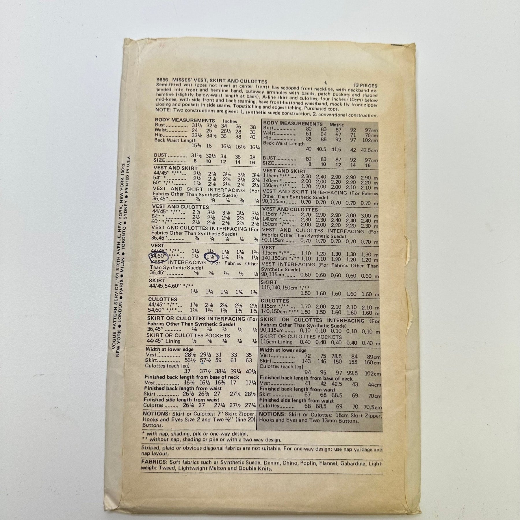 Sewing Pattern - Womenswear - Vogue 9856 - True Deadstock supplies Fabric by private - Sustainable Textile | FABCYCLE