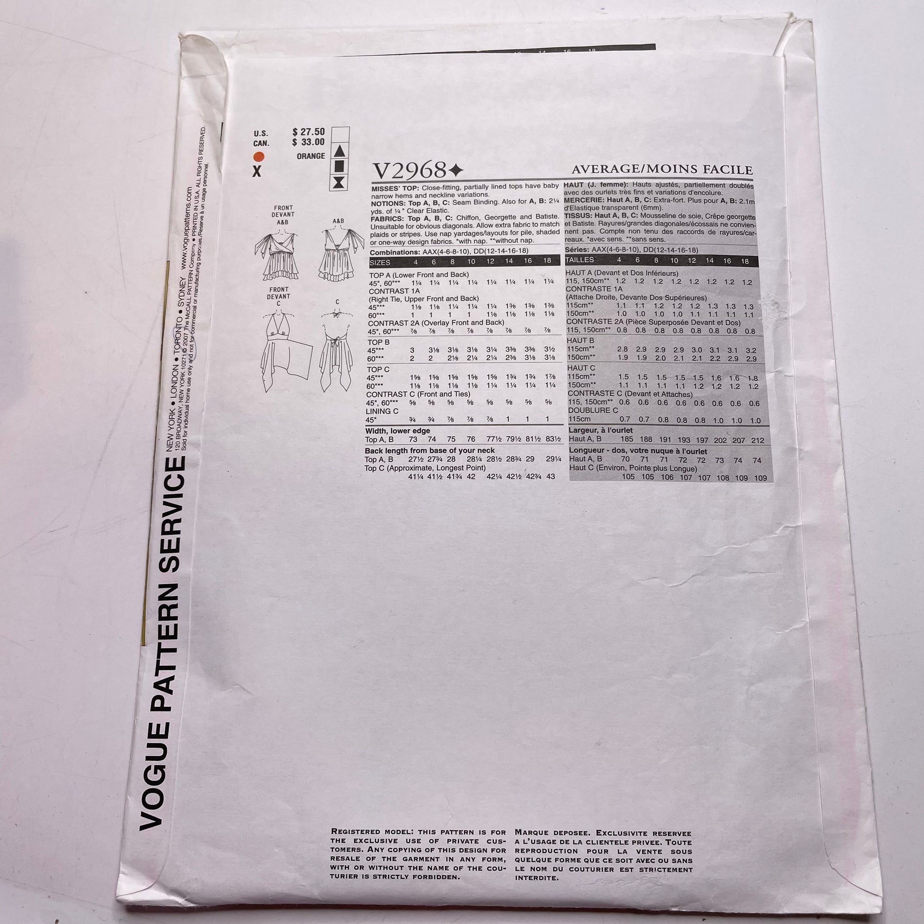 Sewing Pattern - Womenswear - Vogue V2968