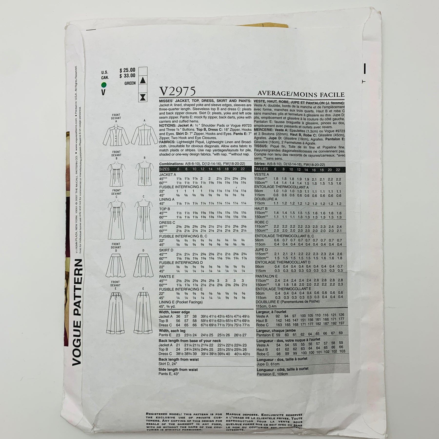Sewing Pattern - Womenswear - Vogue V2975