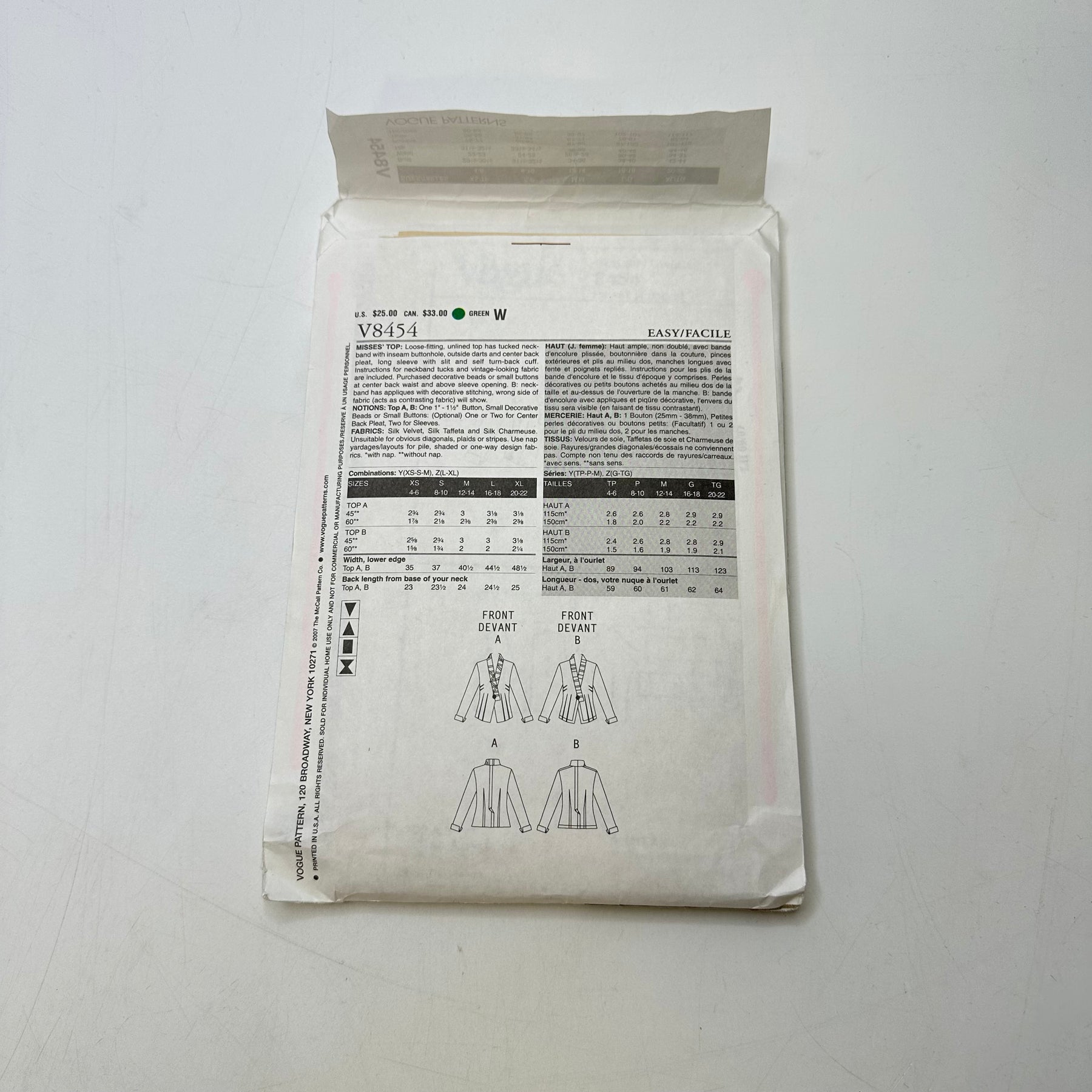Sewing Pattern - Womenswear - Vogue V8454