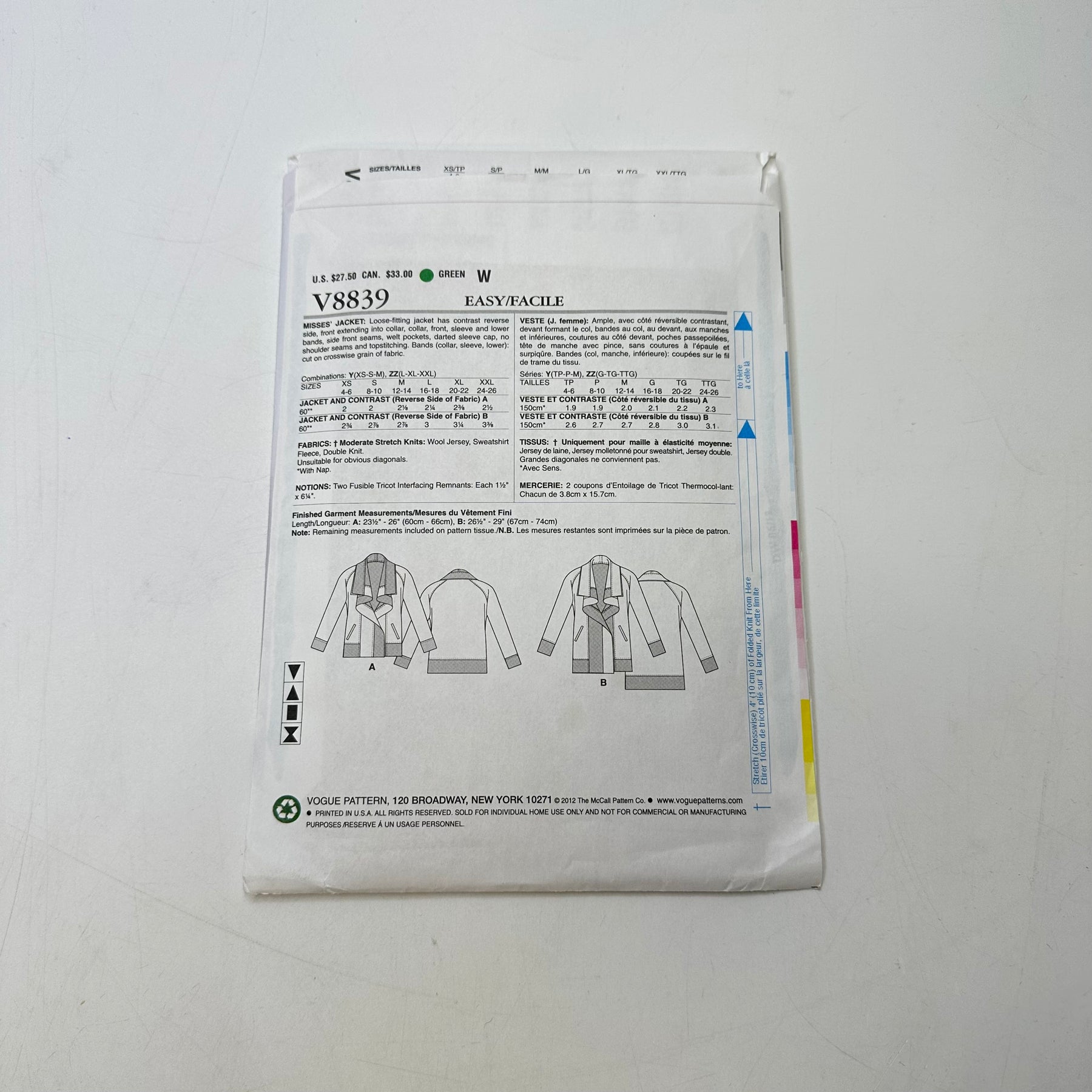 • Please note your size and measurements, as well as the required notions on the package.