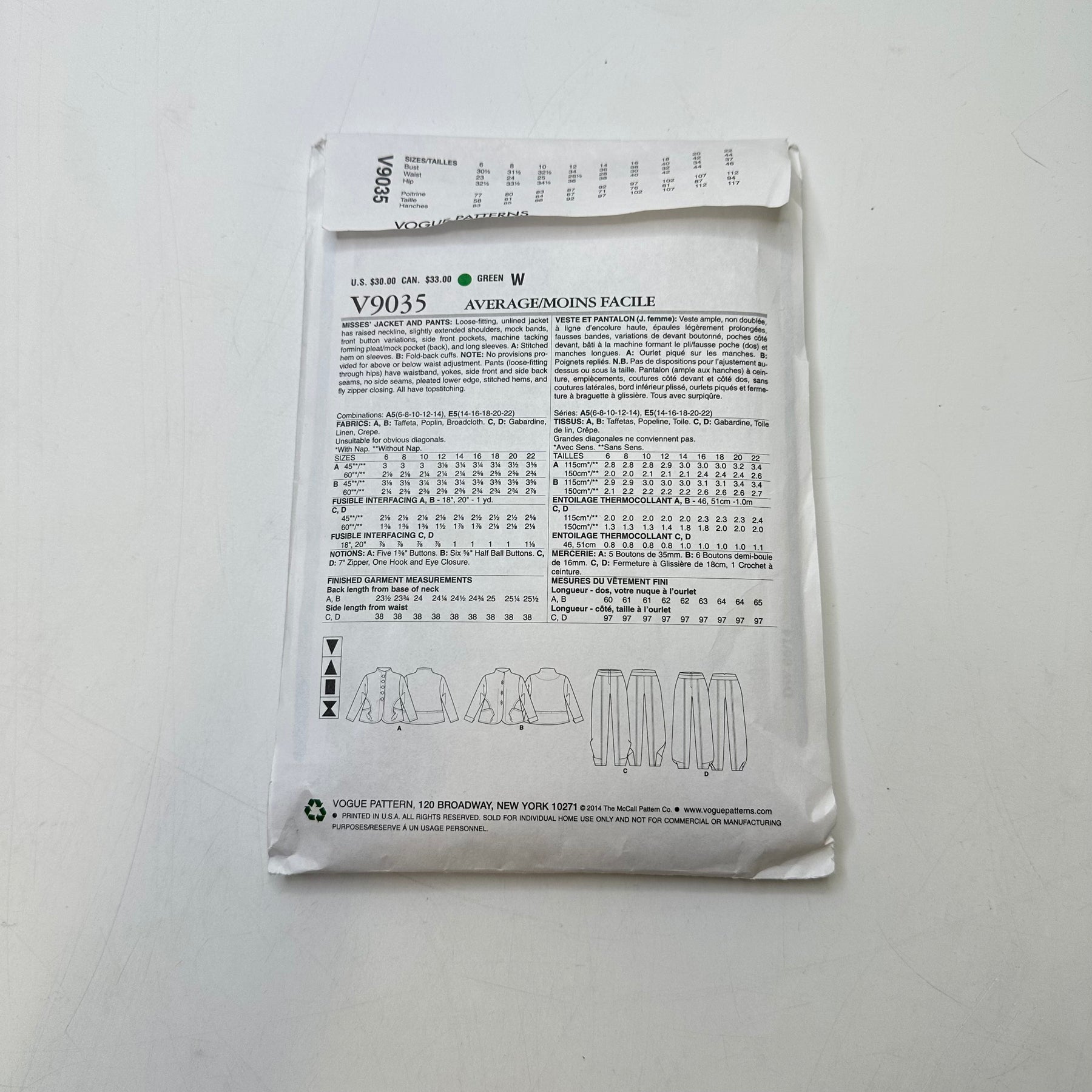 • Please note your size and measurements, as well as the required notions on the package.