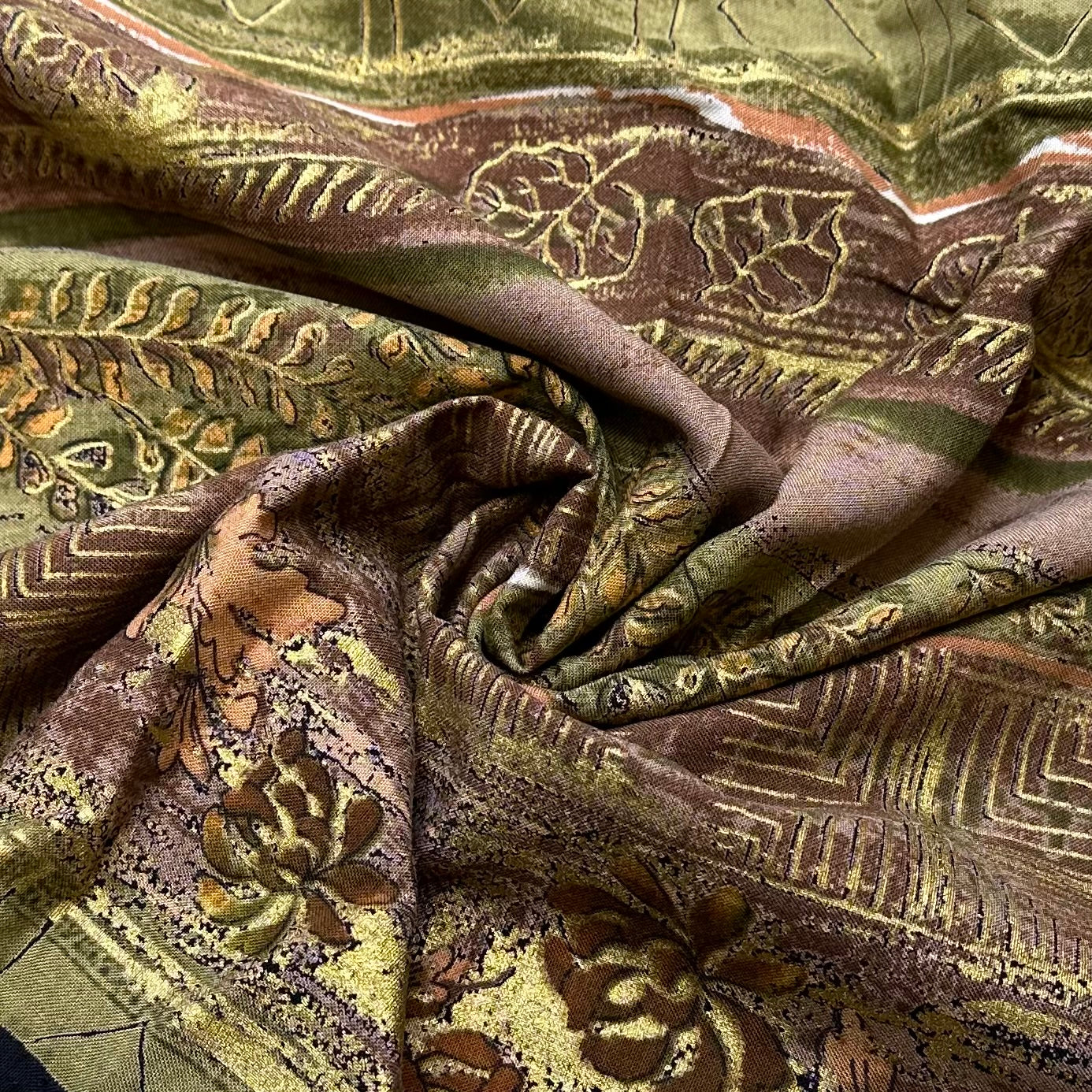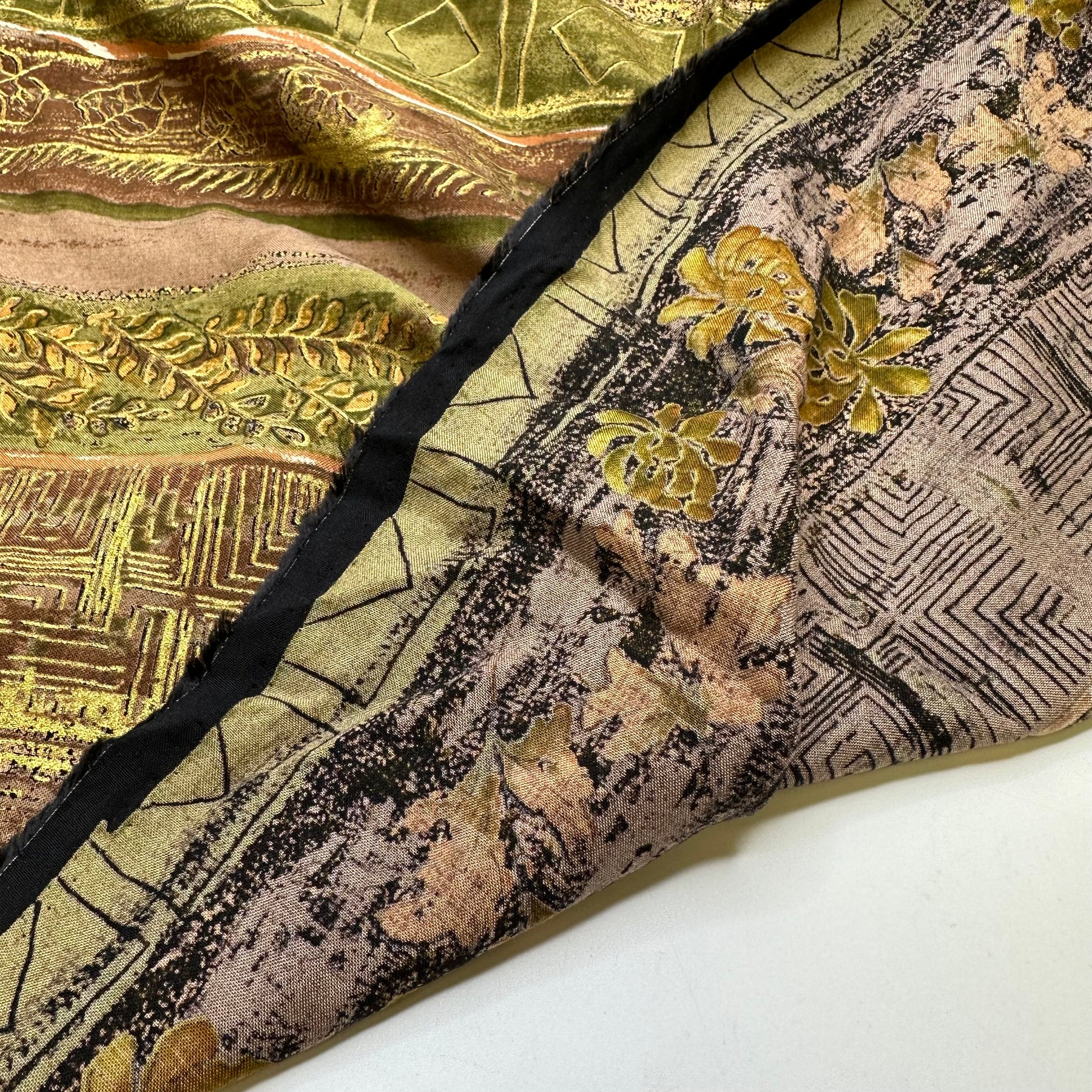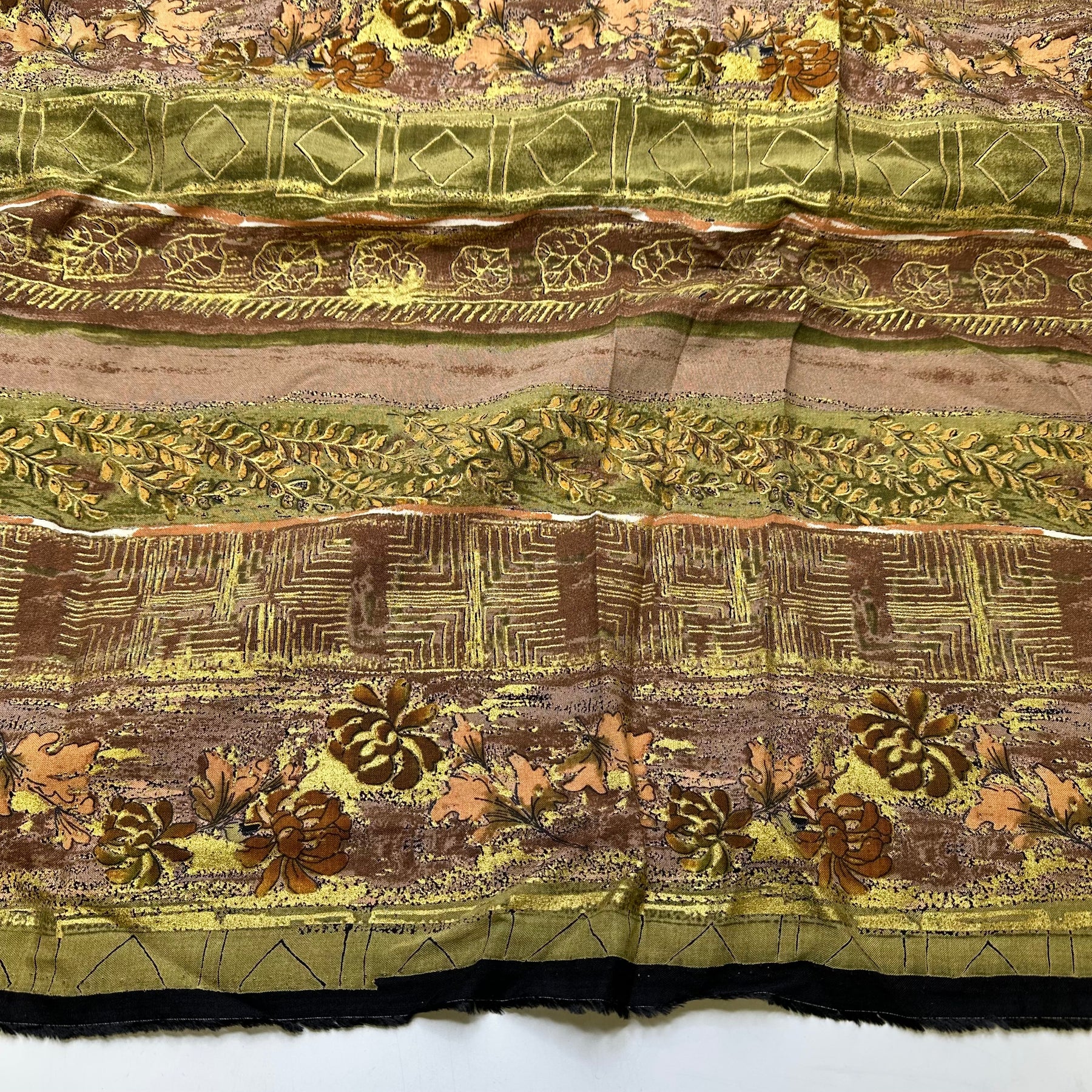 Thailand Holiday - Gold Paint Cotton Woven - Light Brown Multi Floral Geometric Stripes - Bundles