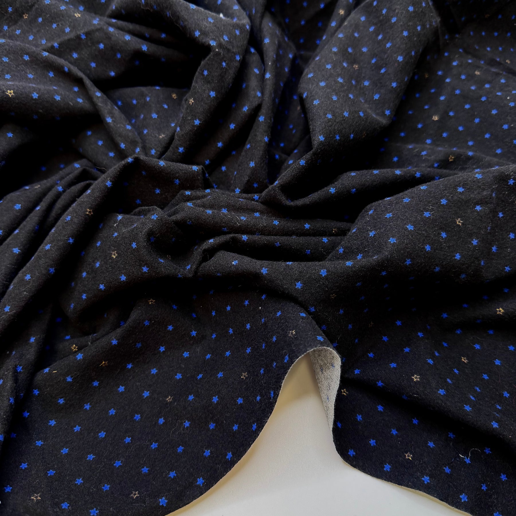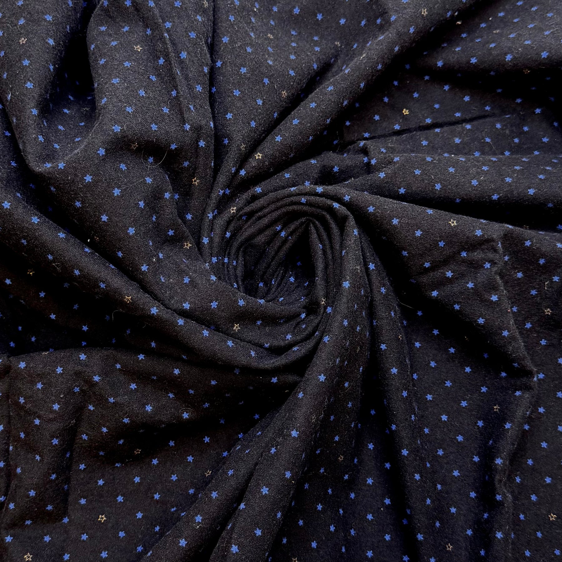 Thank Your Lucky Stars - Flanelette Cotton Woven - Black/Blue Stars - 1.1M Bundle