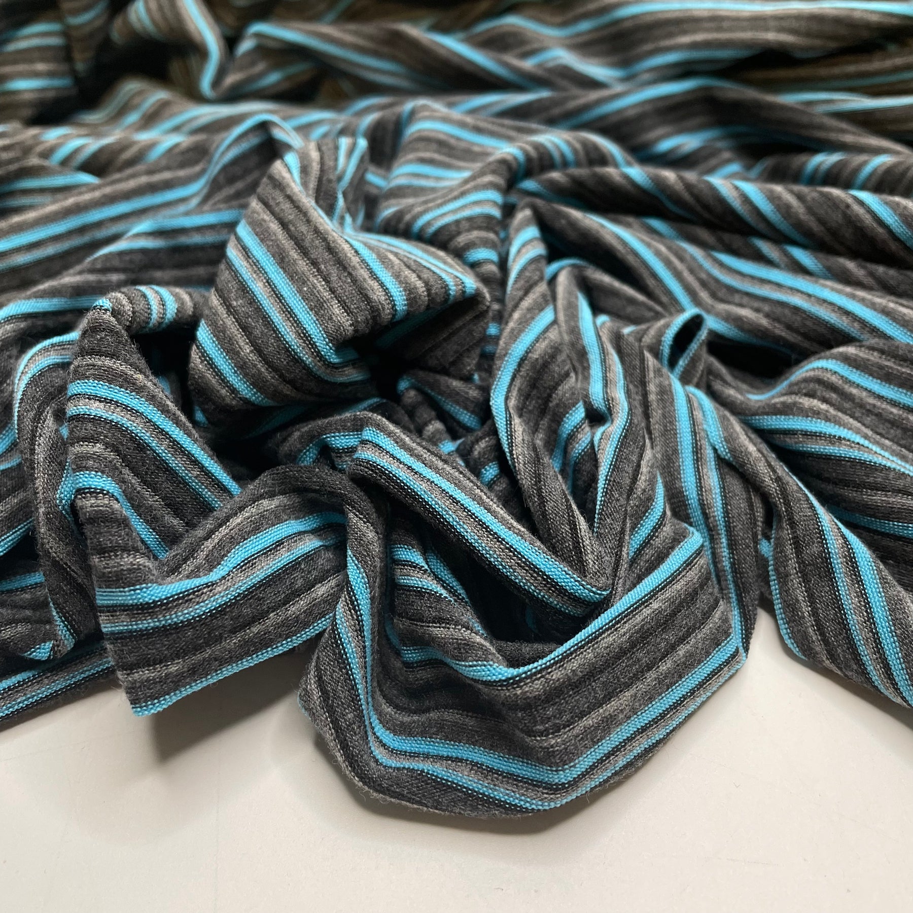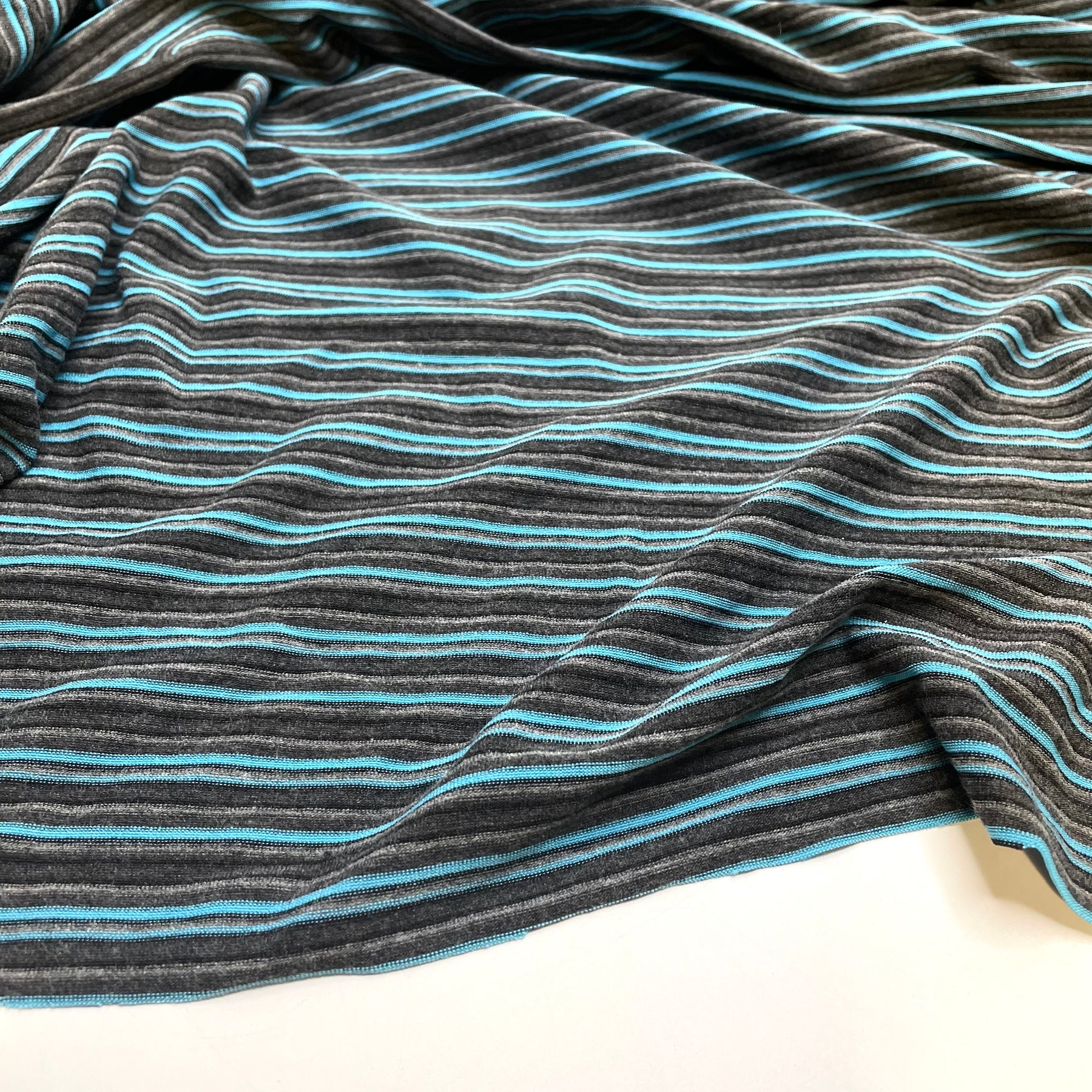 Time For The Reading Corner - Jersey Polyester Blend Knit - Grey/Blue Stripes - Bundles