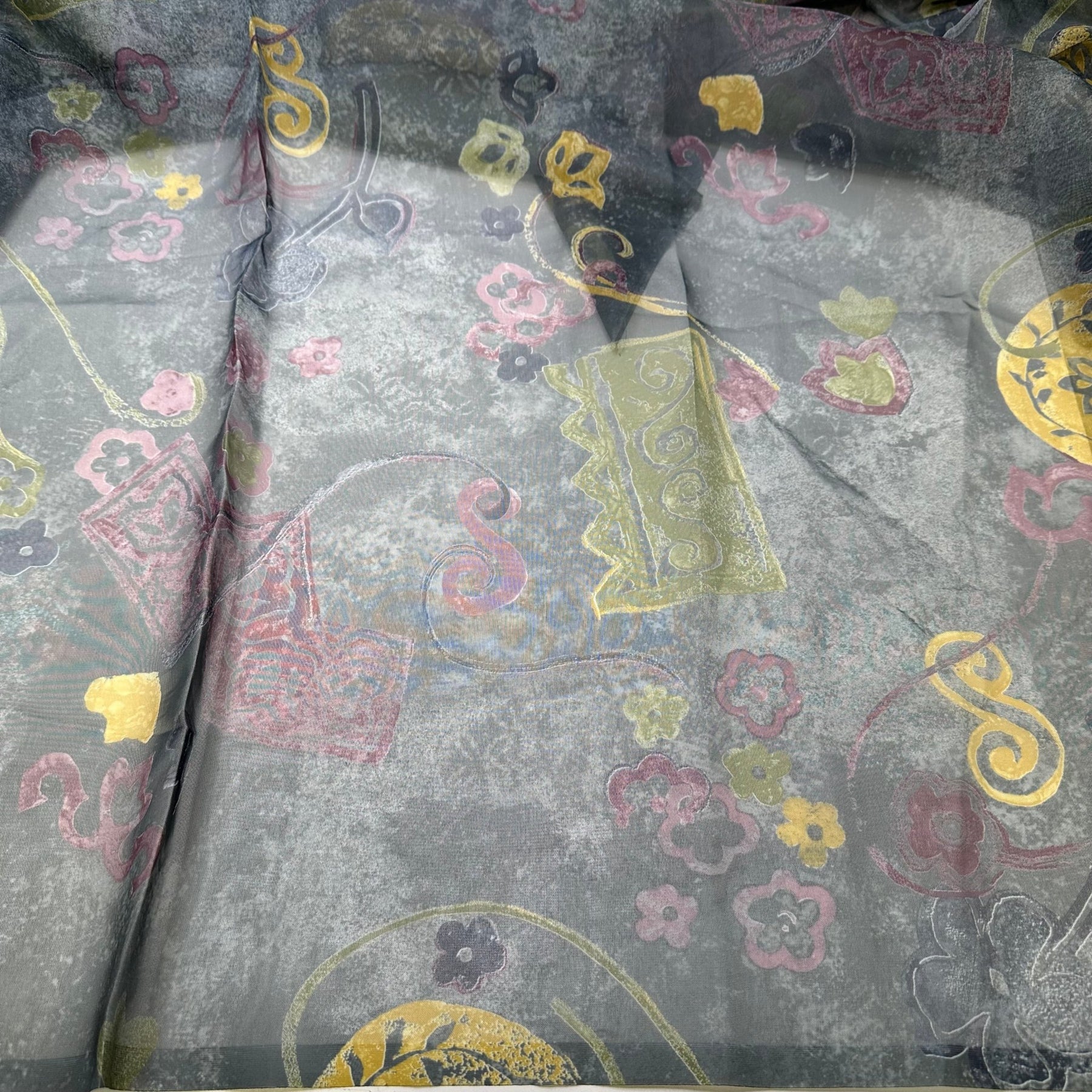 UB - Behind The Curtain - Organza Poly Woven - Dark Grey Multi Geometric - 1.6M Bundle