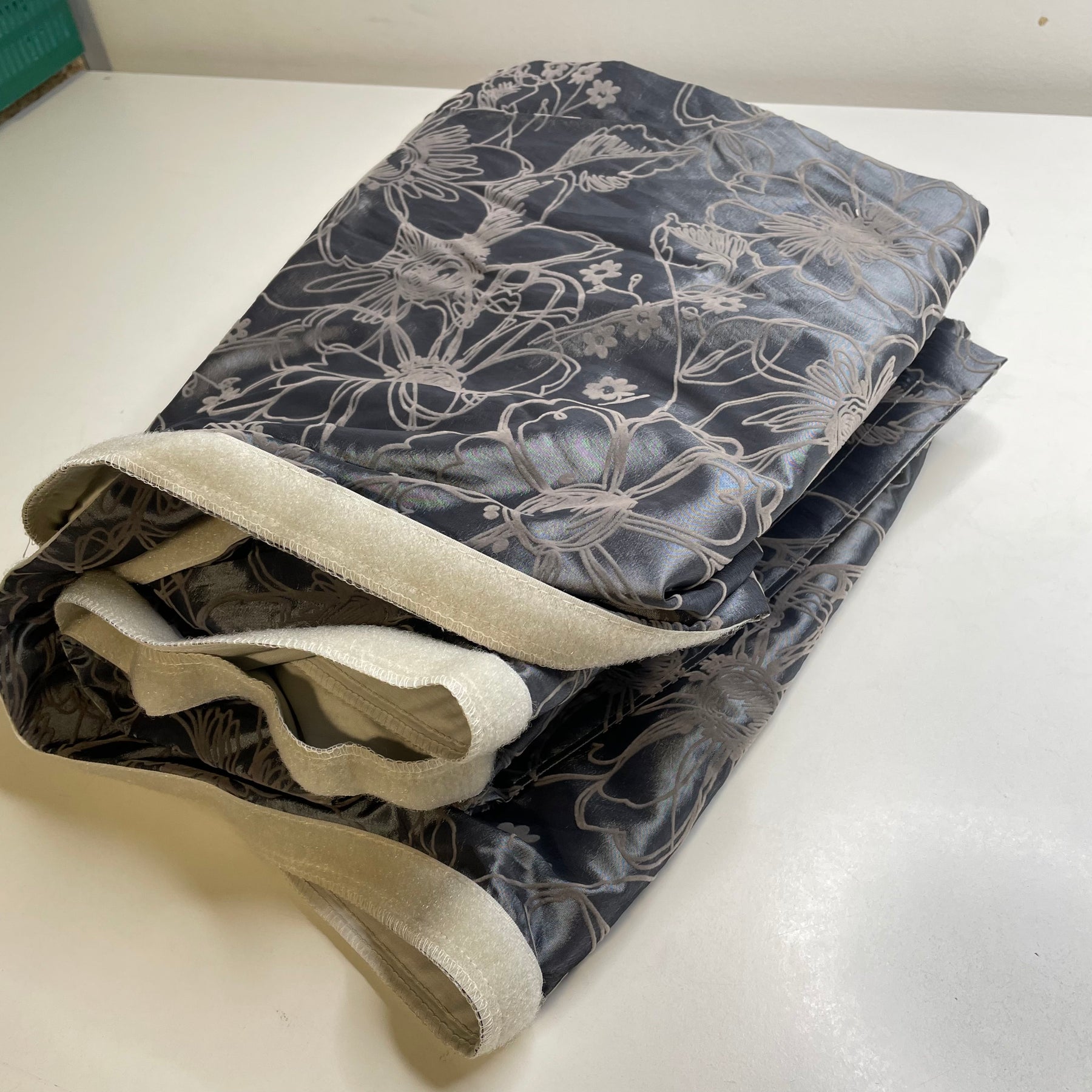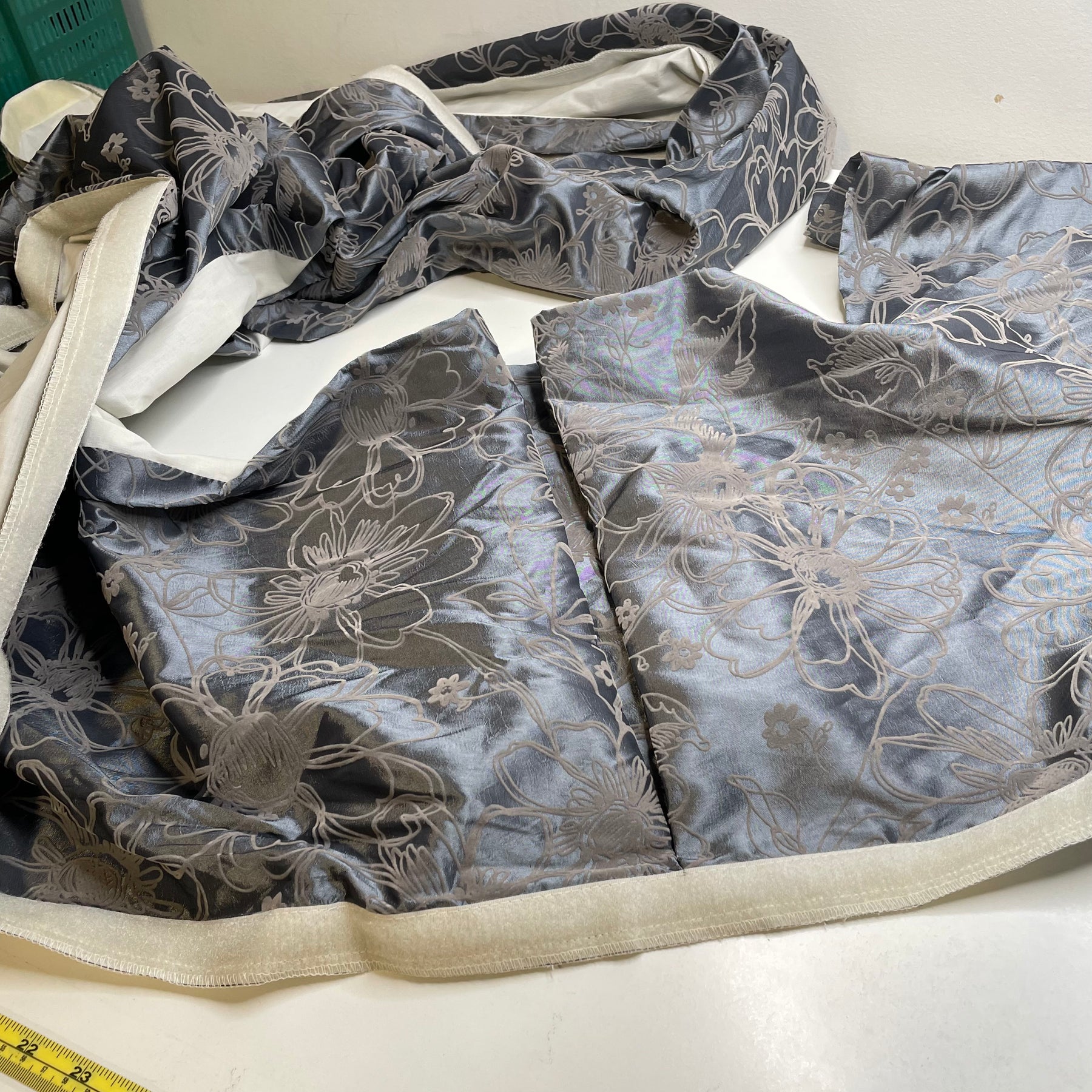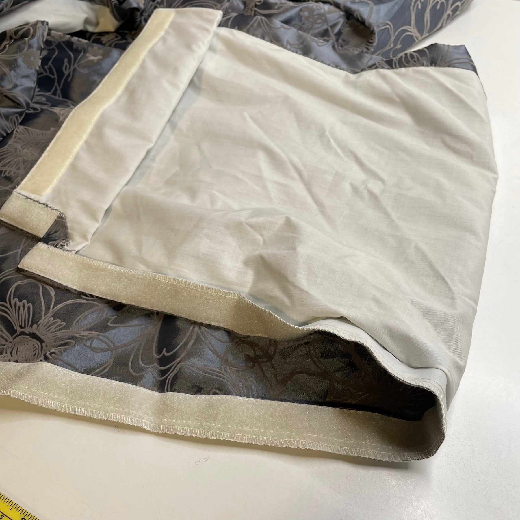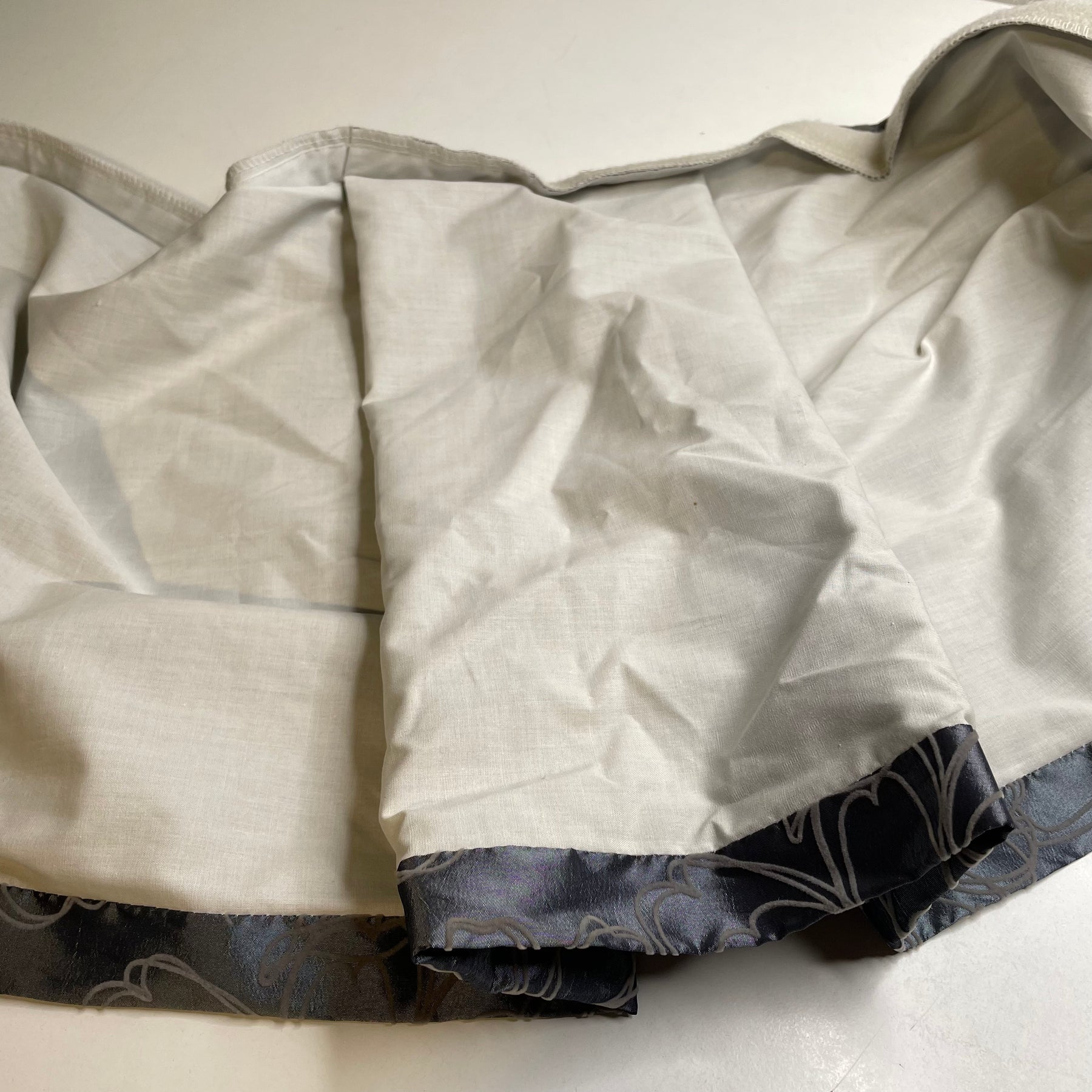- Imperfection(s): Pre-made curtain skirt with velcro